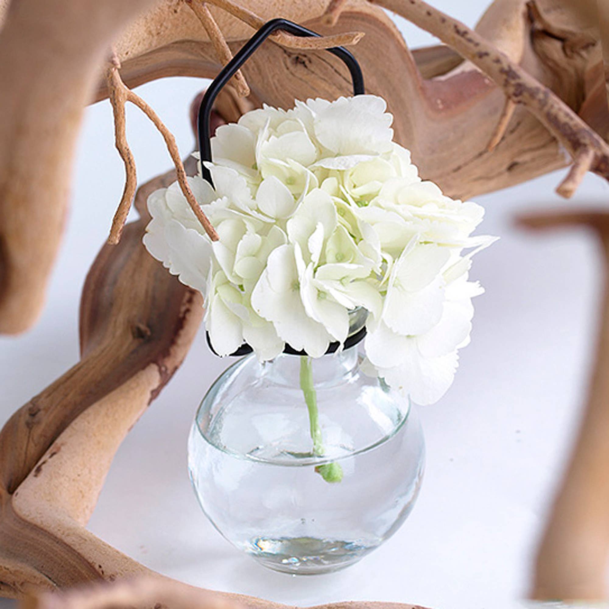 The Hanging Small Ball Rooter Vase is a stylish and eco-friendly choice for plant lovers, crafted from recycled glass and sturdy metal. This elegant round glass propagation vase is perfect for growing plants through hydroponic rooting, making it an ideal hanging glass vase for displaying cuttings, flowers, or small water plants. Its unique spherical shape allows you to observe the beauty of roots developing, adding a touch of nature indoors. This decorative rooting vase doubles as a water plant holder, effortlessly enhancing any home decor, office space, or special event with its sustainable charm. Create a botanical haven and let this propagation container spark conversations with its blend of eco-consciousness and sophistication.