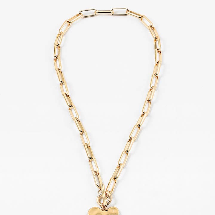 This vintage inspired gold toggle necklace with a heart charm is more than just a pretty piece—it's a daily reminder to love yourself and share that love with the world. The charm hangs on a beautifully unique chain, adding a trendy twist to your everyday look. Whether you’re dressing up or keeping it casual, this necklace is a stylish way to spread love and kindness wherever you go! Features • Gold or Silver plated brass • Measures 15.5” plus a 3” extender, 1.5” dropdown heart
