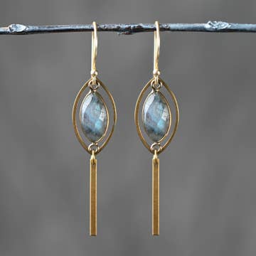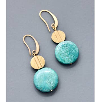 Love, love, love!! This is a great earring with a long wire, semi precious stones and the word love that has been stamped, blackened and polished. Sea Blue Jasper is said to help find inner peace and release stress.Amethyst promotes balance & healing. Metal: Brass Size: Approx 2" Handmade with Art & Soul