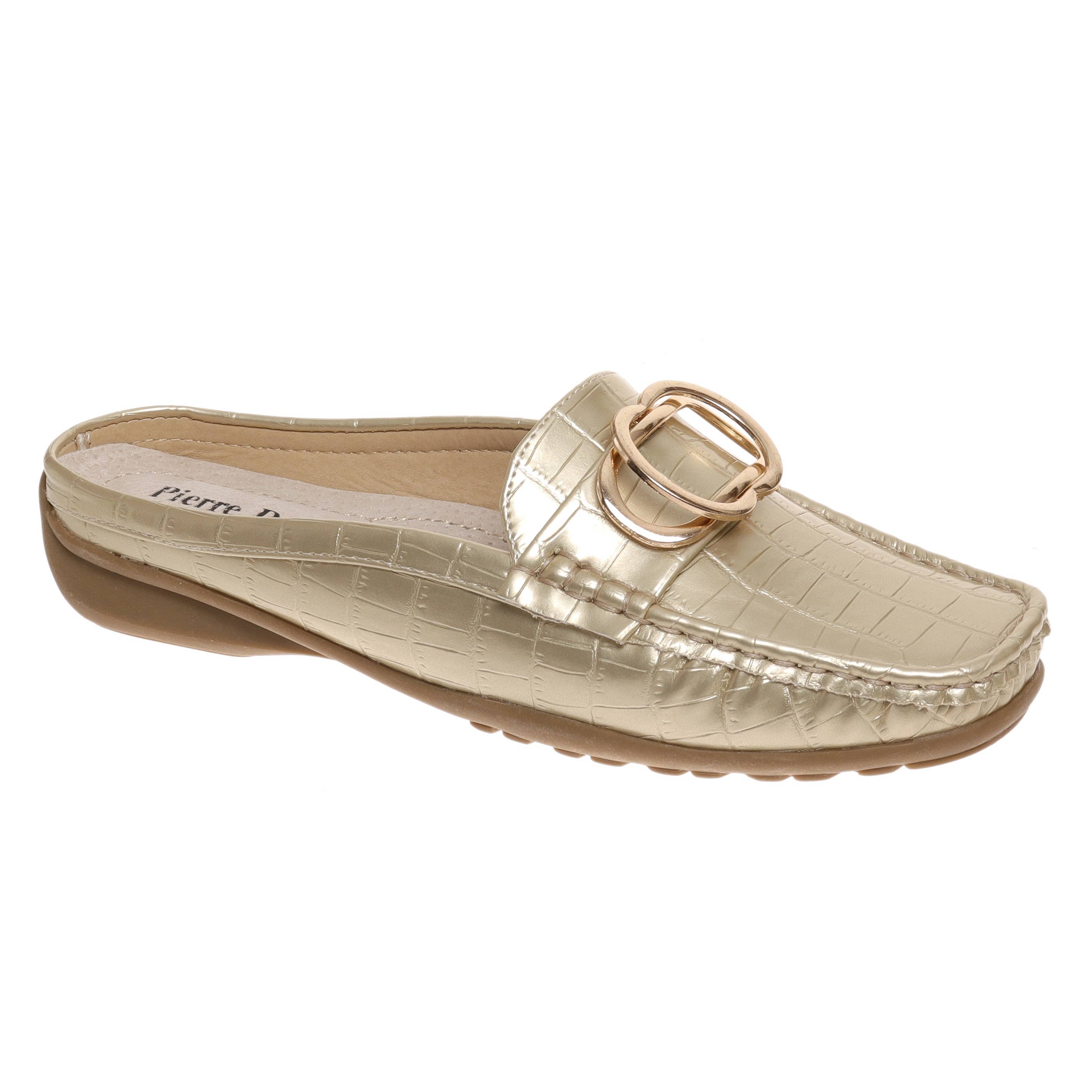 The metallic pleather loafer is a truly exquisite creation. It boasts a dazzling rhinestone-embellished strap, plush cushioned insoles, and comfortable flat heels. Perfectly suited for pairing with evening gowns, these square-toed loafers are an elegant addition to your wedding trousseau. Type: Loafers Upper Material: Metallic Pleather Outer Sole: TPR Closed Round Toe Rhinestones Embellished Strap Comfortable Flat Heels Soft Cushion Insoles RCSH5059