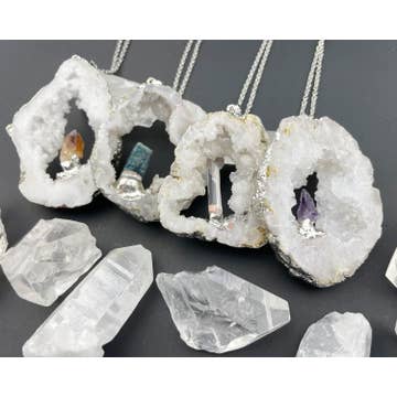 Wholesale Raw Crystal Pendulum Necklace - Clear Quartz / Clarity