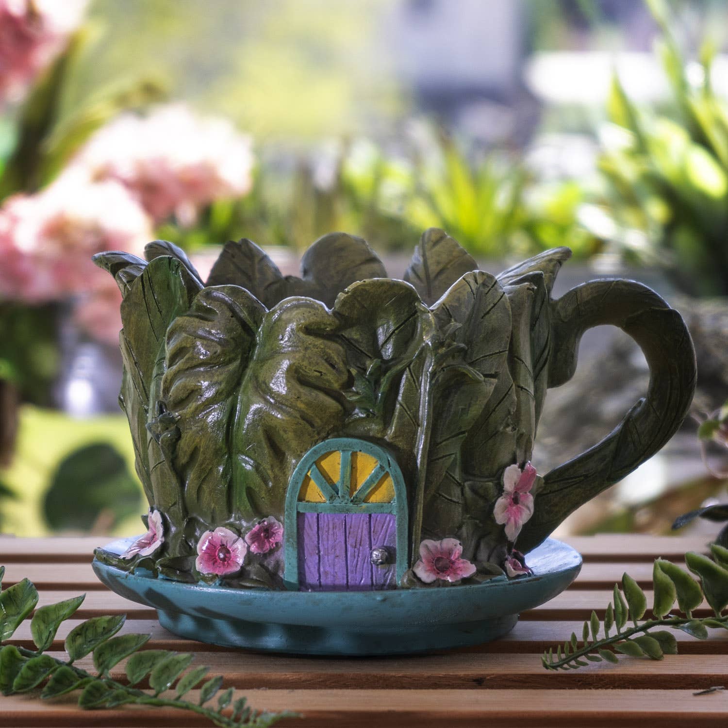 Add a splash of vibrant color to your home or garden with a bright flower pot! This flower pot is made of hand painted resin and is suitable for indoor or outdoor use.