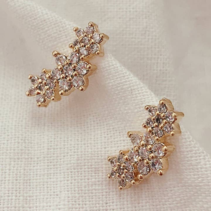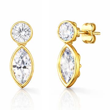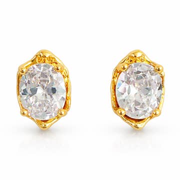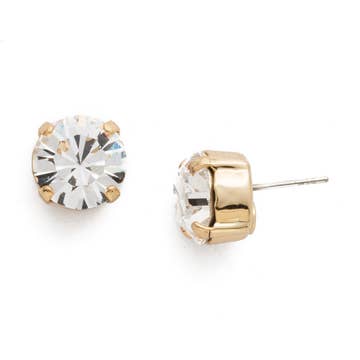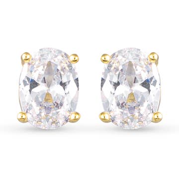 Measurements:  * Small: 6mm stone diameter * Medium: 8mm stone diameter * Large: 10mm stone diameter Closure: Straight post  Materials: 18k gold layered, AAA+ Cubic Zirconia  Package is beautifully wrapped and gift ready!