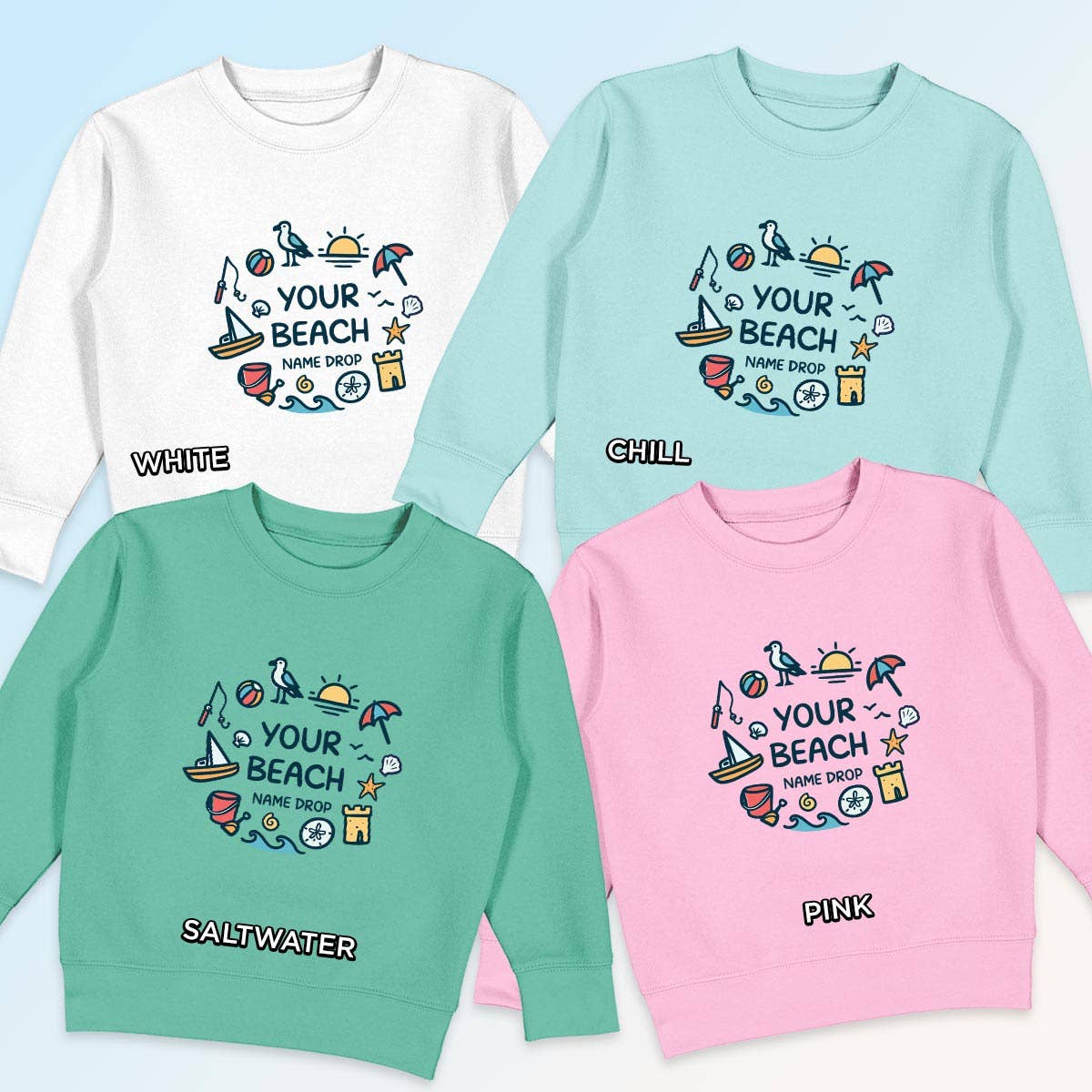 1 pre-pack includes full Kids size: 1-XS (3-4), 1-S(6-8), 1-M(10-12), 1-L (13-14), 1-XL (14-16). Super soft crewneck sweatshirt in our new cotton-blend fleece. Featuring a Fun Surf Graphic in multi-color on the front and back. Retail fit. Rib-knit cuffs and hem. Tonal stitching. For Girls, Boys, Tweens, Youth. Imported.