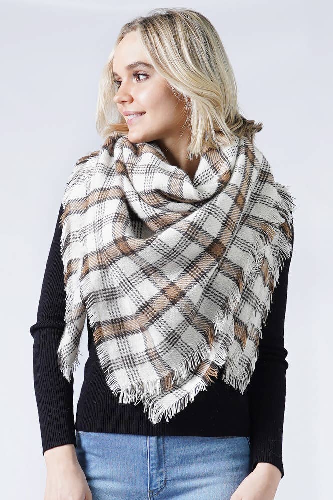 Black Combo Winter Plaid Triangle Scarf for wholesale on Faire3