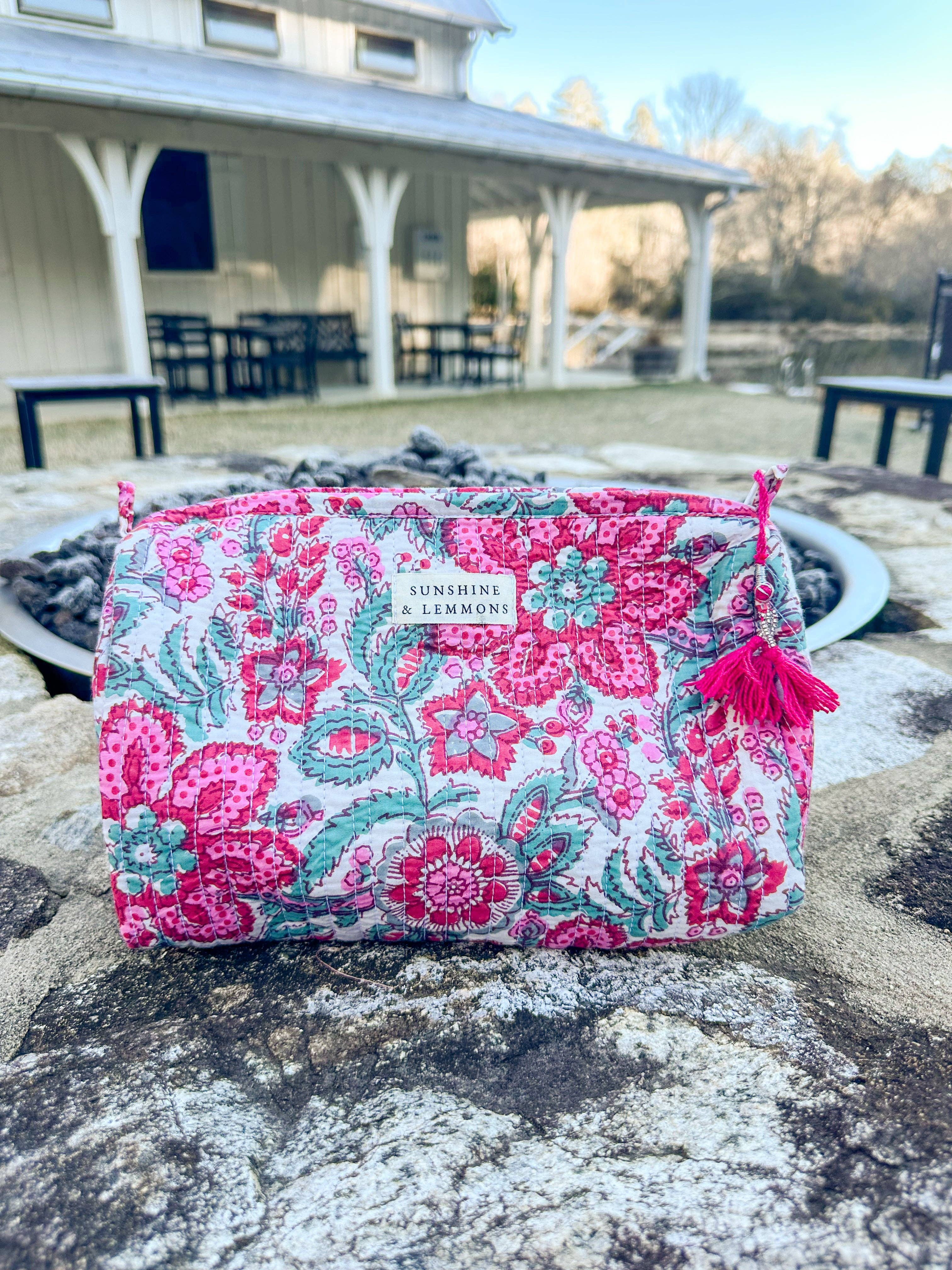 Say hello to our signature handmade cosmetic bag! It’s the ultimate must-have for your makeup, skincare goodies, or even your prettiest pens and stationery. Each bag is a little work of art, hand-dyed and hand-stamped with love. Our signature S&L logo is beautifully stitched on the outside, while the inside features a dreamy white waterproof lining and four handy pockets to keep you perfectly organized. Bag Dimensions: 8 in x 11 in Care Tips: Pop it in the wash on cold all by itself, then hang it up to air dry—easy peasy! Because every bag is handmade, you’ll notice tiny, one-of-a-kind imperfections in the stamping that make yours uniquely yours. We promise—it’s perfectly imperfect and stunningly crafted! All sales are final.