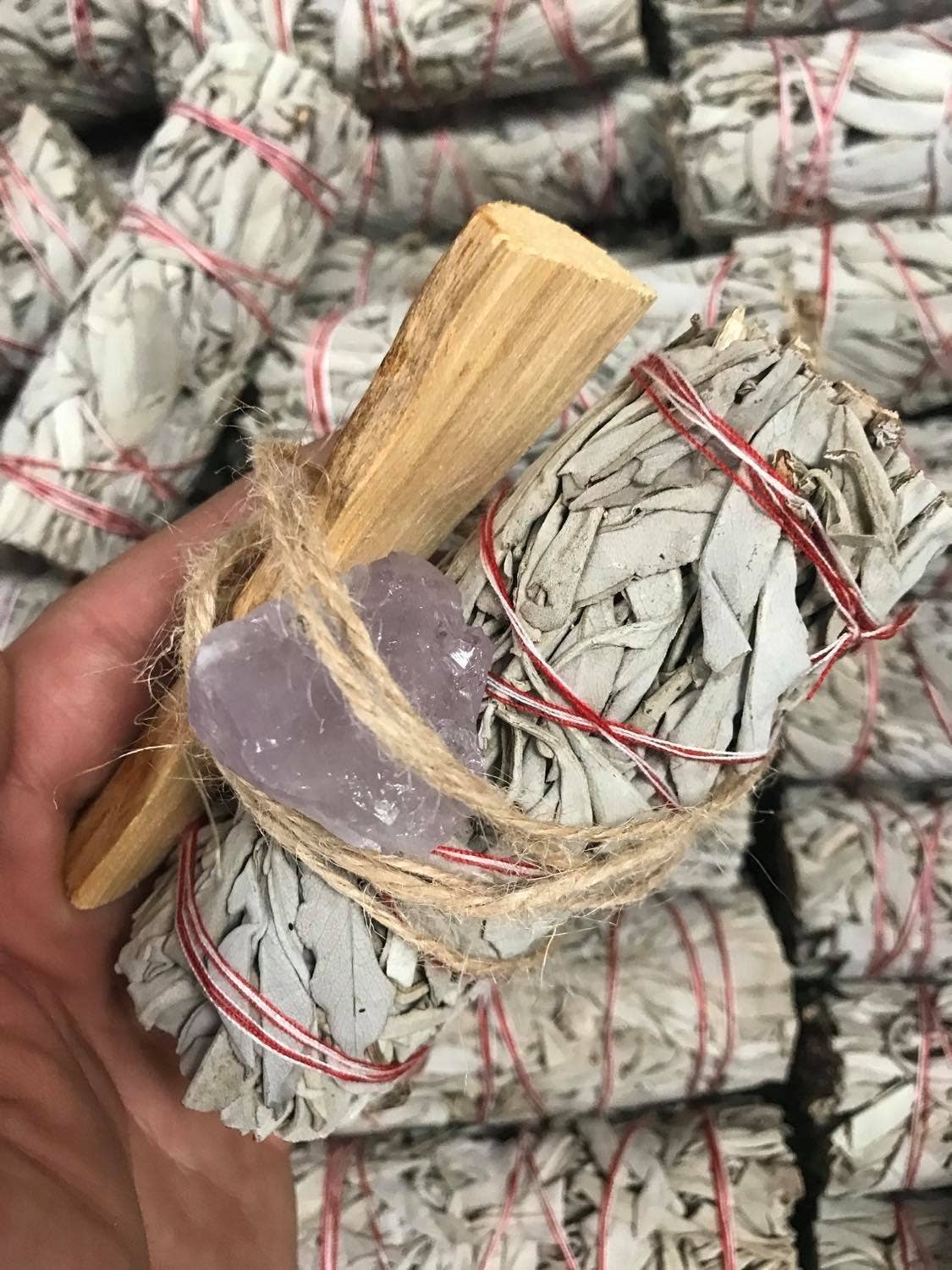 Wholesale Bulk quantities of Premium California White Sage Smudge Sticks - each about 4" in length and 2 in thickness 6in option is around 2.25 in thick 9in option is around 2.5 in thick EXTRA FRESH CHECK OUR REVIEWS hand tied with natural cotton string and super fresh. Bulk pricing - the more you buy the more you save! Quantities are 25, 50, 100, 200, 300, 400, 800, 1200, 1600 or 2000 sticks! if you need more just Contact us. Cleansing with the smoke of our sacred White Sage sticks is a wonderful thing to do when moving into a new home, after an argument, after illness, if you suspect a danger, or just to revitalize your space. You can smudge your home, work place, car, yoga studio, yourself, pets, or loved ones.