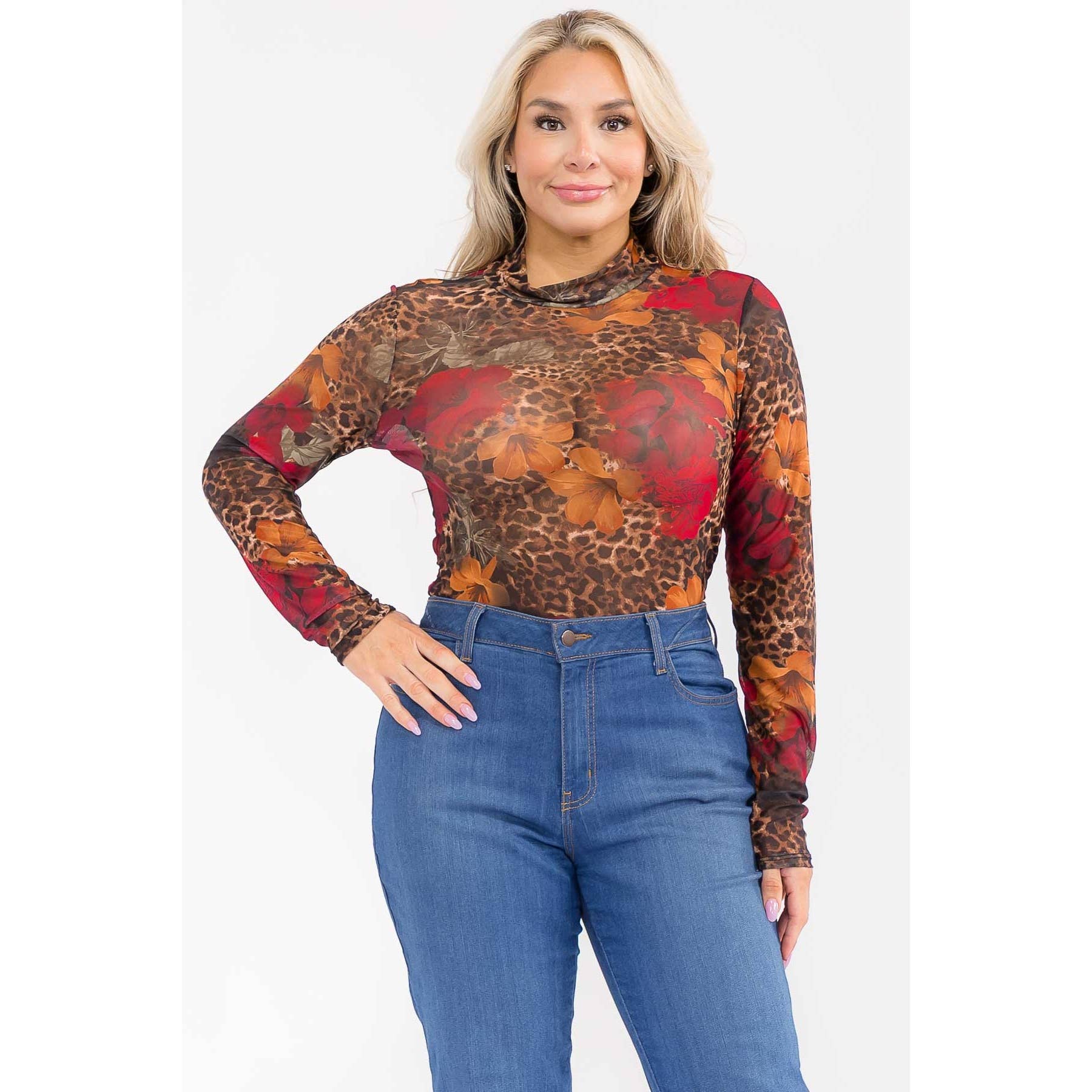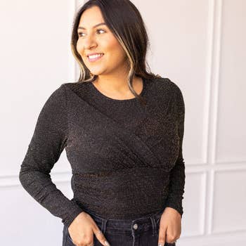 FEATHER CUFF HIGH NECK BODYSUIT – ELEGANT BLACK