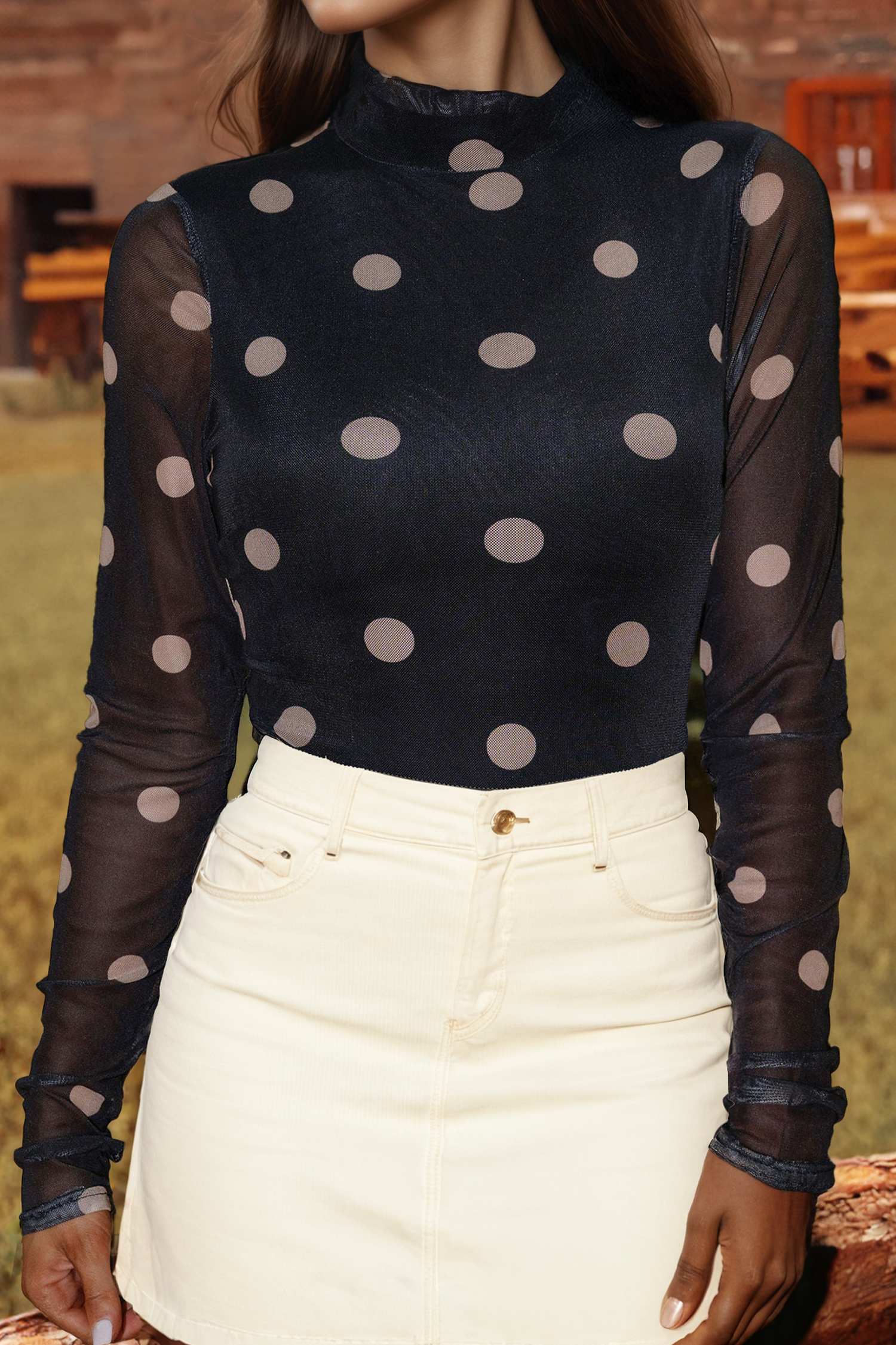 Elevate your eveningwear with this Feather Cuff High Neck Bodysuit in elegant black. Designed with a sleek fitted silhouette and sophisticated mock neck, this long-sleeve bodysuit stands out with its dramatic feather trim cuffs—bringing a touch of glamour to any outfit. Crafted for both comfort and elegance, it’s ideal for night-out styling, cocktail events, or holiday parties. Pair it with a high-waisted skirt or tailored trousers for a refined, fashion-forward look. * Height: 57 cm * Chest: 86 cm * Sleeve Length: 58 cm * Model Height: 177 cm * Model Size: S