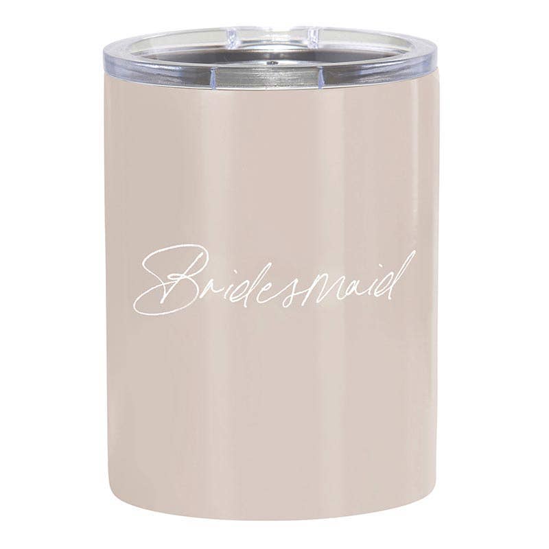 Keep your drink hot or cold on the go with this amazing stainless steel tumbler! • Bride • Press on lid with sliding tab • Material: Stainless Steel • Size: 4.5" H / 12 oz • Care Instructions: Hand Wash Only