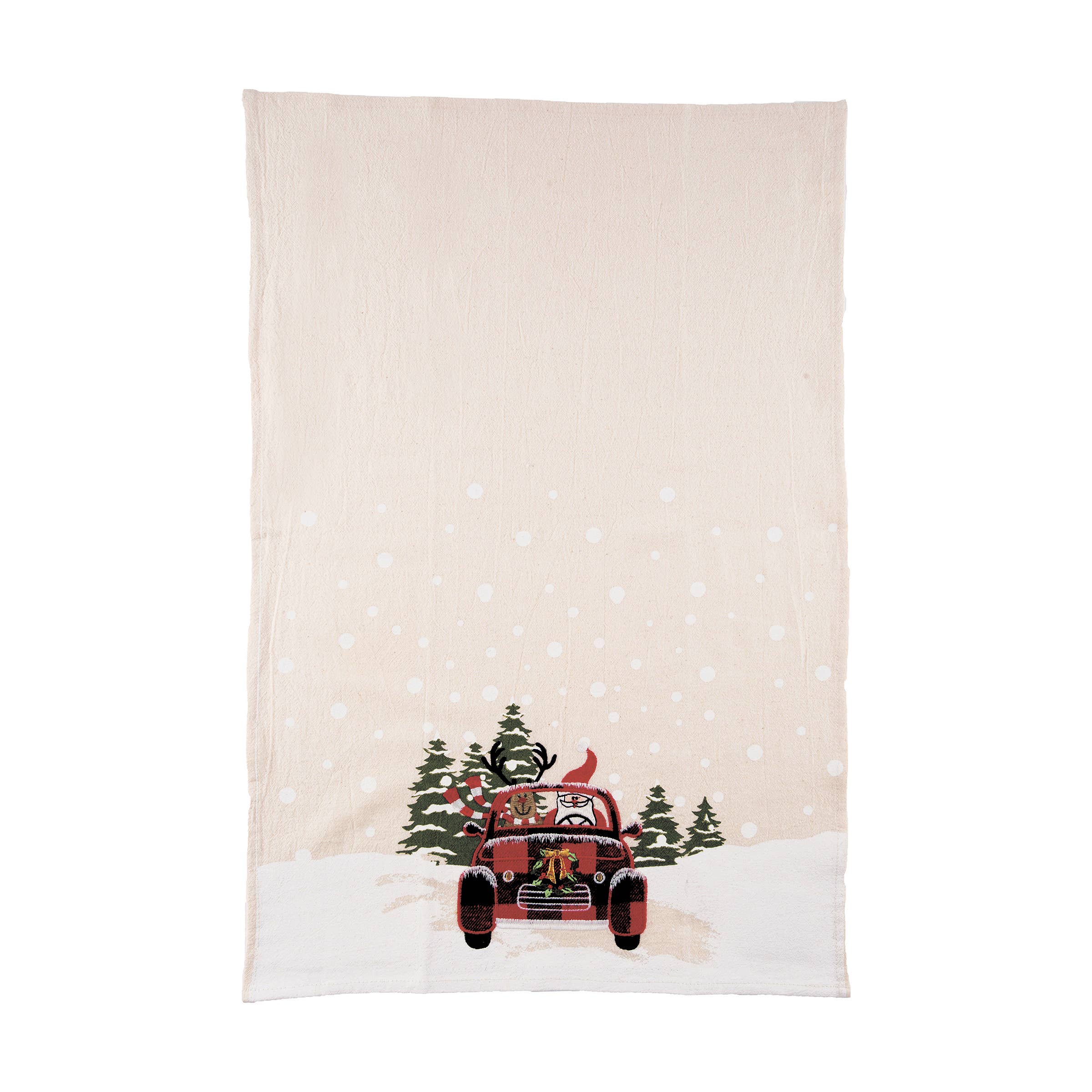 Bring festive charm to your kitchen with the Home for the Holidays Christmas Village Tea Towel! Featuring a hand-painted winter village with twinkling lights, cozy homes, and snow-dusted trees, this towel is perfect for adding warmth to your holiday baking and entertaining. A thoughtful gift for a hostess, mom, or anyone who loves the magic of Christmas. Features | Soft and absorbent 100% cotton fabric, Hang Tight™ Loop for secure display Material | Cotton Size | 19×28"