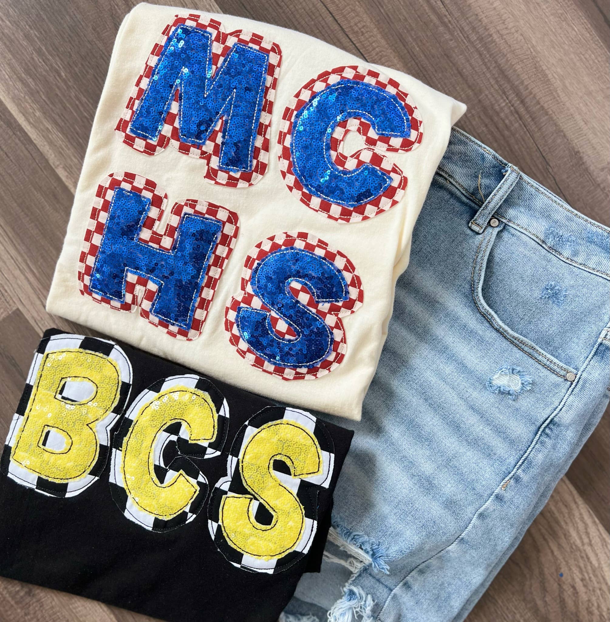 * 6 shirt minimum per style * Unisex fit * MADE TO ORDER * S-3X * SHORT SLEEVE Tee or sweatshirt * HANDMADE MADE TO ORDER * EMBROIDERED AND APPLIQUÉ This item is customizable please leave school colors, abbreviation, and mascot in the note box.