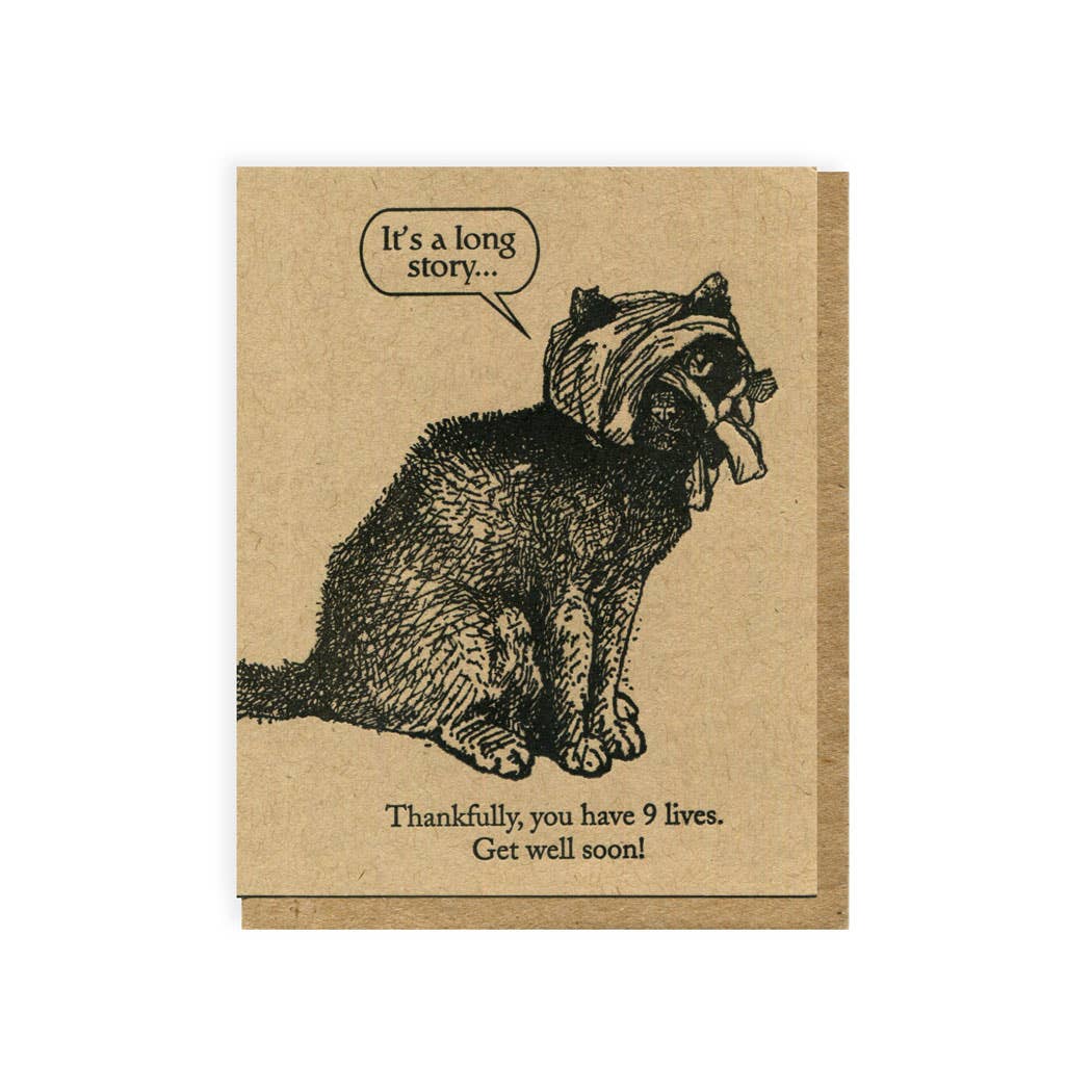 Vintage Cats Get Well; We Heard You're Not Feeling Well; Super Adorable Vintage Cats; Encouragement; Support; Funny and Cute Get Well PRODUCT DETAILS: This is an A2 card, digitally printed on 100% recycled, 100 lb. luxurious cover stock. This card is blank inside, and it comes with a 100% recycled, A2 kraft envelope and wrapped in a clear plastic sleeve.