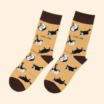 These Socks Save Cats. We will donate 10% of profits to a charity that helps protect cats and find them forever homes. Our socks are: * Thermoregulating (cool in summer, warm in winter) * Sweat-proof (moisture-wicking & anti-bacterial) * Softer than cotton * Wash cold for the environment (30 degrees) * OEKO-Tex Certified * SEDEX Audited * 100% Recyclable packaging Bare Kind was founded by Lucy in 2018 to save endangered animals worldwide through partnerships with Charities. These gender neutral socks are loved by all. The Collection includes * Colourful socks that are fun for all * Socks that will keep you cool * Dress Socks * Bamboo Socks * Socks for shops Perfect for: Cat Socks, Cute Animal Socks, Pet Socks, Socken, Calzini, Work Socks, Underwater Gifts, Christmas Gifting These are: Brown Socks People also consider: Novelty Gifts, Stocking Stuffers, Eco Conscious Gifts, Gift Sets