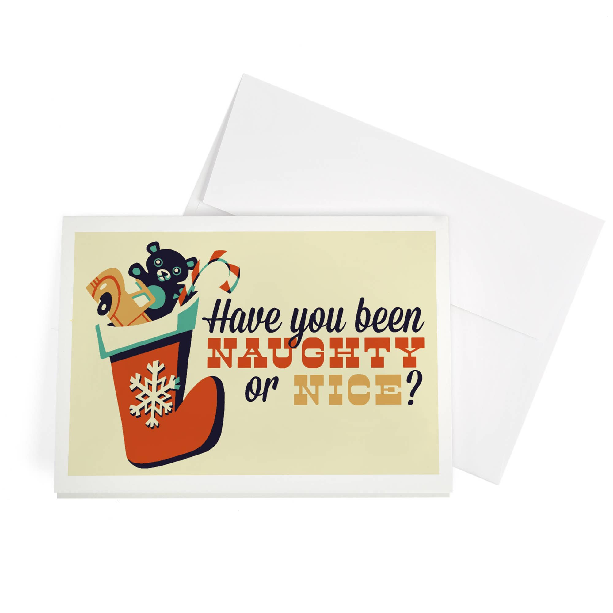 This absolutely hilarious greeting card measures 4.25″ x 5.5″ and includes a red envelope. The inside of the card is blank, so you'll have to come up with something equally fantastic for the inside all on your own (sorry!)