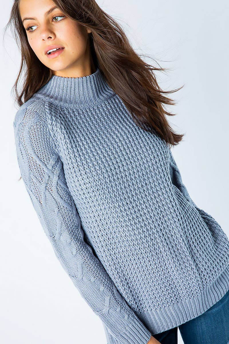 * Style No: CD8929-4 - Vintage casual look with front button down details - Washed cable knitted finish - Loose and relaxed fit - Model in heather grey is 5' 8" 32-23-34 and wearing a Small Available By BLACK : 11/21/2025 TAUPE : 11/21/2025