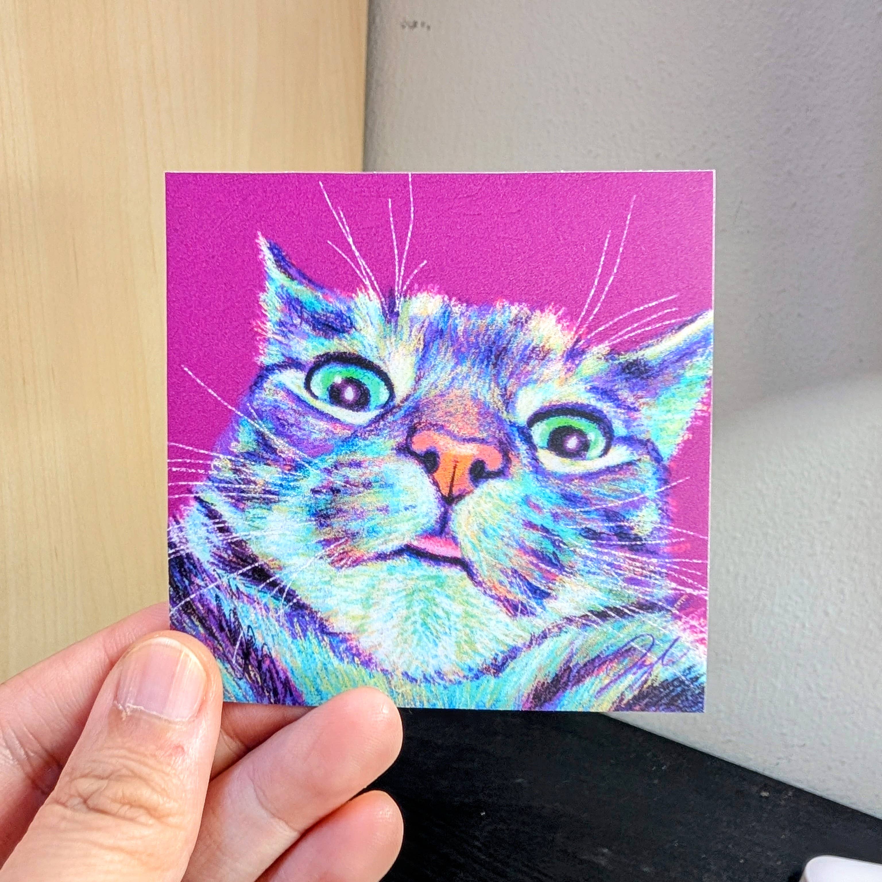 SKU: COLORFUL-POPARTCAT-DIECUT-PACK Made in United States Weight: 0.28 g (0.01 oz) Dimensions: 7.6 x 7.6 x 0.3 cm (3 x 3 x 0.1 in)