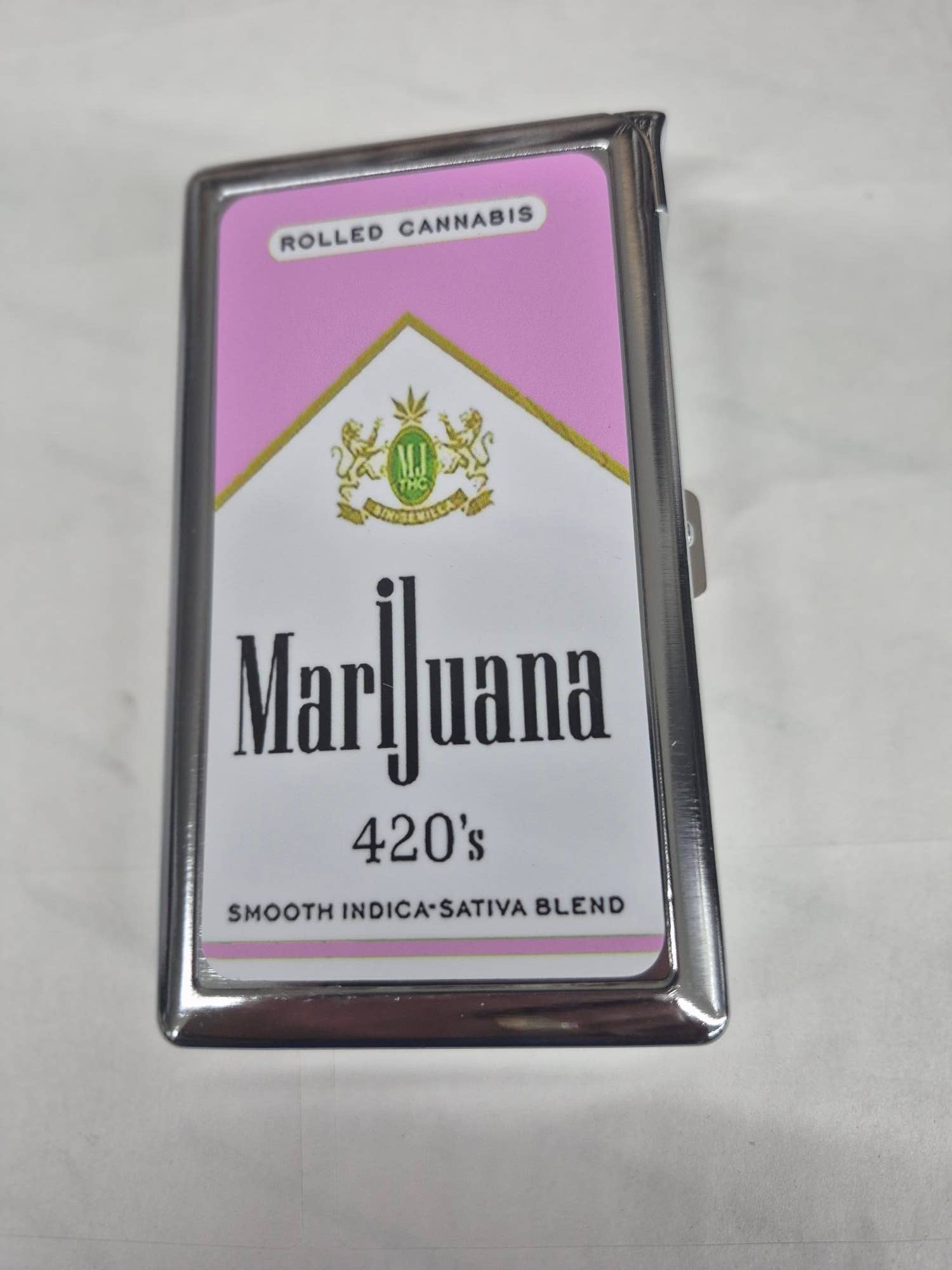Premium cigarette joint storage case with built-in butane lighter. Will also accommodate cash Credit cards and ID Premium polished chrome cigarette case with durable artwork with built-in refillable butane lighter. This cigarette case with a built-in butane lighter is far superior to others sold by other sellers. Heavier construction quality materials are with photo-quality artwork. Vibrant colors and detail image on front you can just tell the quality when you hold them side by side you can feel the weight difference and quality. Also the interior is beefed up with a more secure framework that holds the lighter in place making it easy to remove to refill butane using just your fingernail whereas the other styles have a flimsy piece spot welded that can easily break and requires a small screw driver to remove the lighter. The lighter is even upgraded and has a larger fuel capacity and longer lifespan.