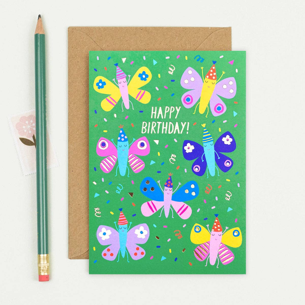 Lovely llamas have gathered in party hats and sunglasses on this kid’s birthday card, ready to throw a magical birthday party for a special little person. This fun-filled birthday card is complete with colourful party hats and gold foil details, including a caption that reads “Happy Birthday!” - the perfect memorable design for all ages. Made in the UK Size: 105mm x 150mm Premium, responsibly sourced card Paired with a kraft envelope Blank inside Supplied without cello packaging This is just one of many designs from the Mifkins collections of beautiful greeting cards.