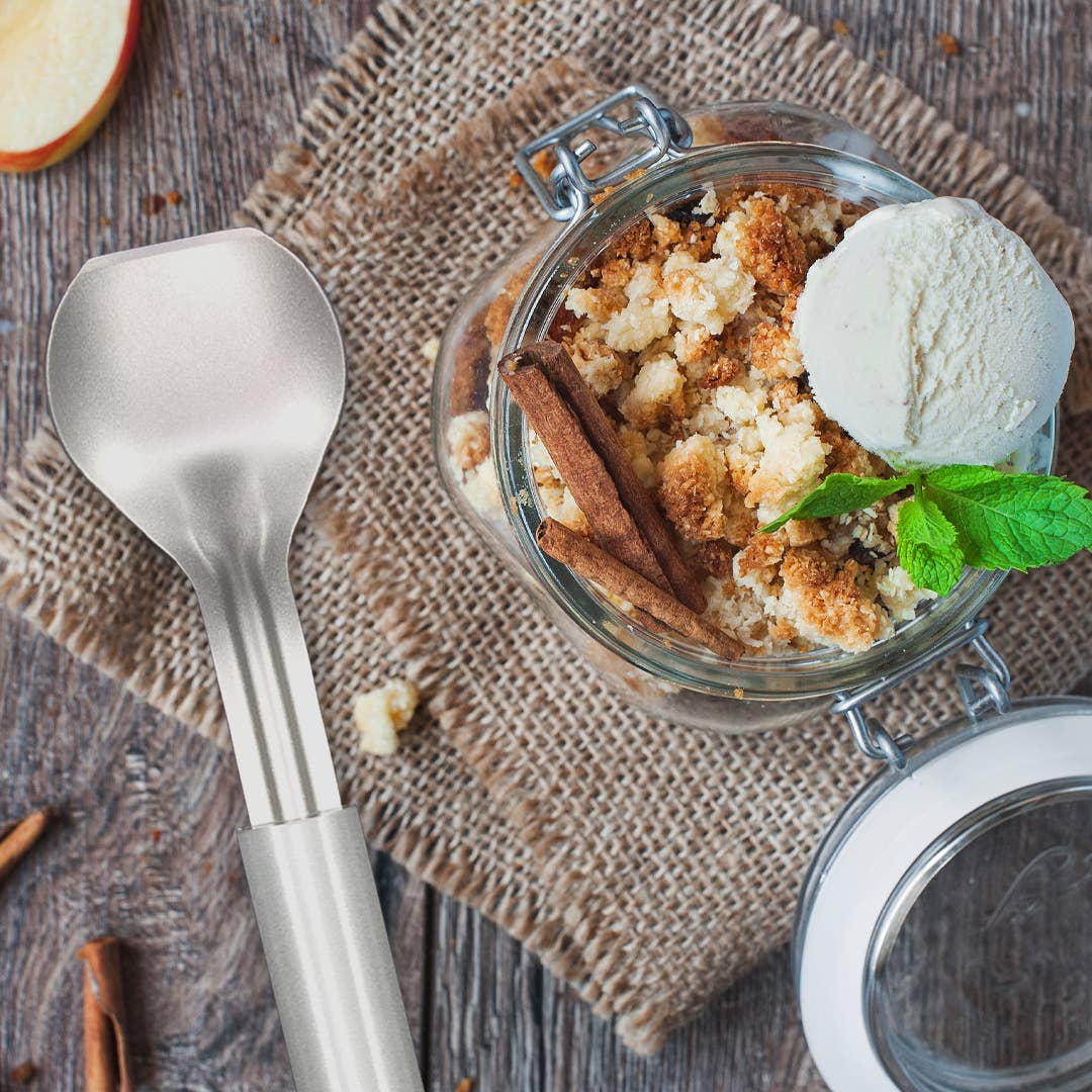 Rada’s Ice Cream Scoop makes America’s favorite dessert easier to scoop, thanks to its stub-nose end that pushes through even the hardest-packed ice cream. Crafted with a sturdy ridge that provides added stability, our Ice Cream Scoop will not bend! And the nice long handle means you can get down to the bottom of the bucket and keep your fingers clean. This utensil is made from quality 300 series high-nickel stainless steel for great performance and superior durability. The sturdy ridge adds no-bend stability, assuring it’ll hold up to even the hardest ice cream. All Rada Cutlery products are 100% made in the USA. That means ultimate craftsmanship and dependability. Covered by our Lifetime Guarantee from defects in material or workmanship!