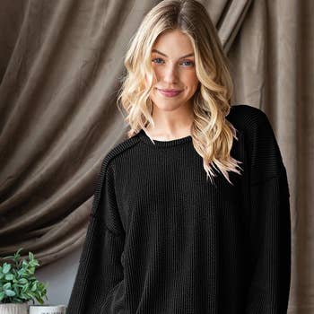PULLOVER CASUAL EVERYDAY KNIT TOP. MADE WITH SOFT TEDDY TEXTURED FABRICATION. RELAXED FIT WITH A CREW-NECKLINE AND DROP SHOULDESR. FULLY LINED WITH SOFT TOUCHED JERSEY FABRICATION. EASY CASUAL COMFORTABLE EVERY DAY TOP. *DETAIL* -PLUS SIZE FIT -RELAXED FIT -CREW-NECKLINE -SOFT STRETCHY TEDDY FABRICATION -FULLY LINE IN SIDE WITH SOFT STRETCHY JERSEY FABRICATION -PERFECT FOR LAYERING IMPORT