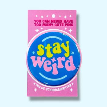 1.5 inch pinback button. The perfect size for attaching to book bags, backpacks, and jackets. Also available as a 1.5inch magnet. Our pins and all of the equipment to make them are made in the USA by a woman owned company. Please note - colors may vary from what you get as different monitors and photography may show them slightly different. We try to represent them as best as we can!
