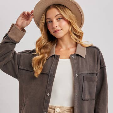 Doe and Rae - Wholesale Shirt Jacket/Shacket - Women's - Fleece Knit Button-Down Shacket W/ Patch Pocket - 10606J1