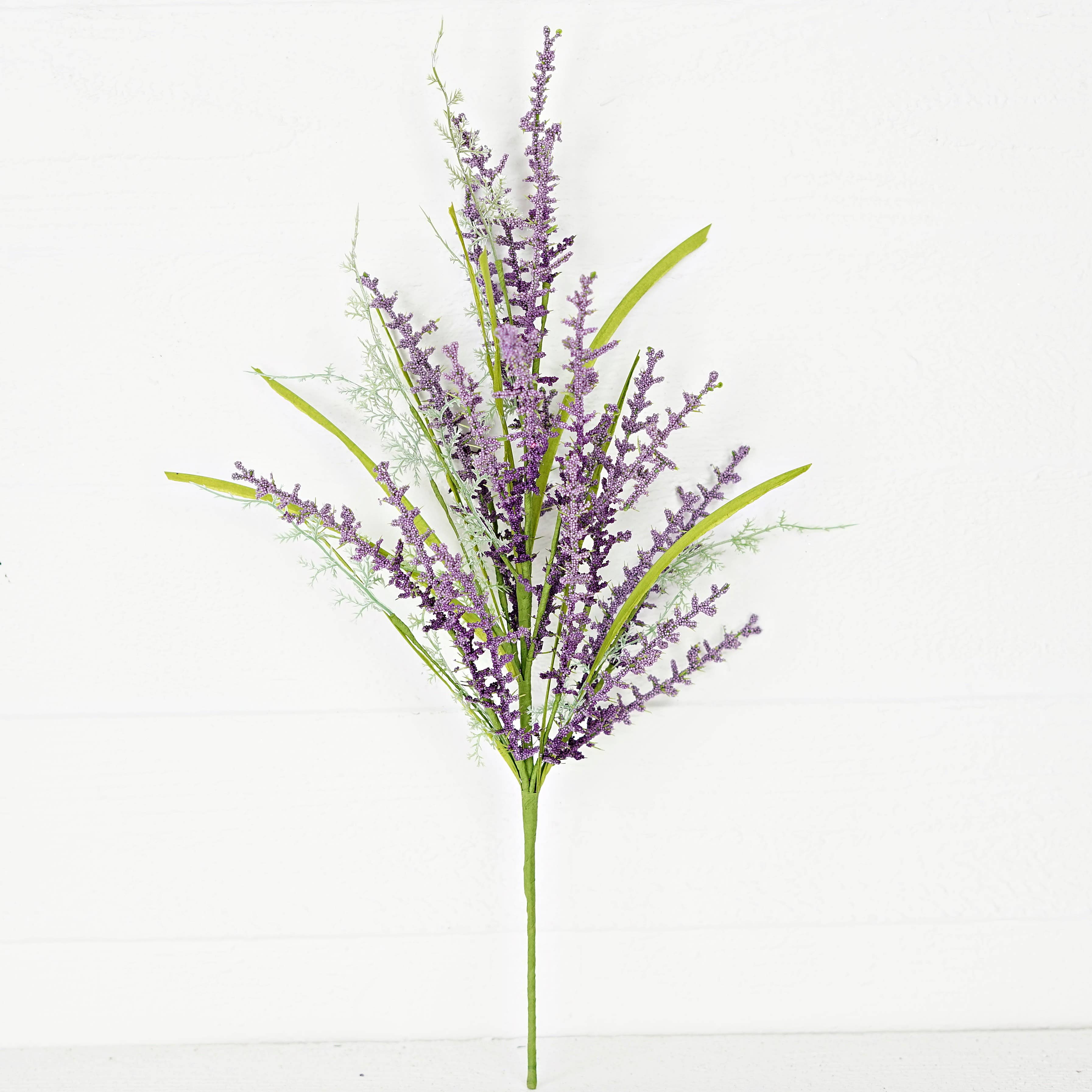 White Heather Spray features green-wrapped wire stems with plastic white buds and green foam leaves. It is shapeable and can be easily fluffed for an airy feel. Heather spray looks darling on itās own, but can be combined with pink and purple sprays for a dazzling display. Measures 20" high by 6" wide by 2" deep.