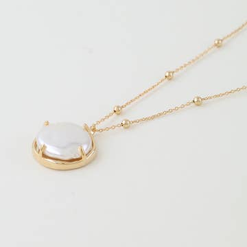 Brushed Plating Crescent Moon w/Ball Pendant Long Necklace
