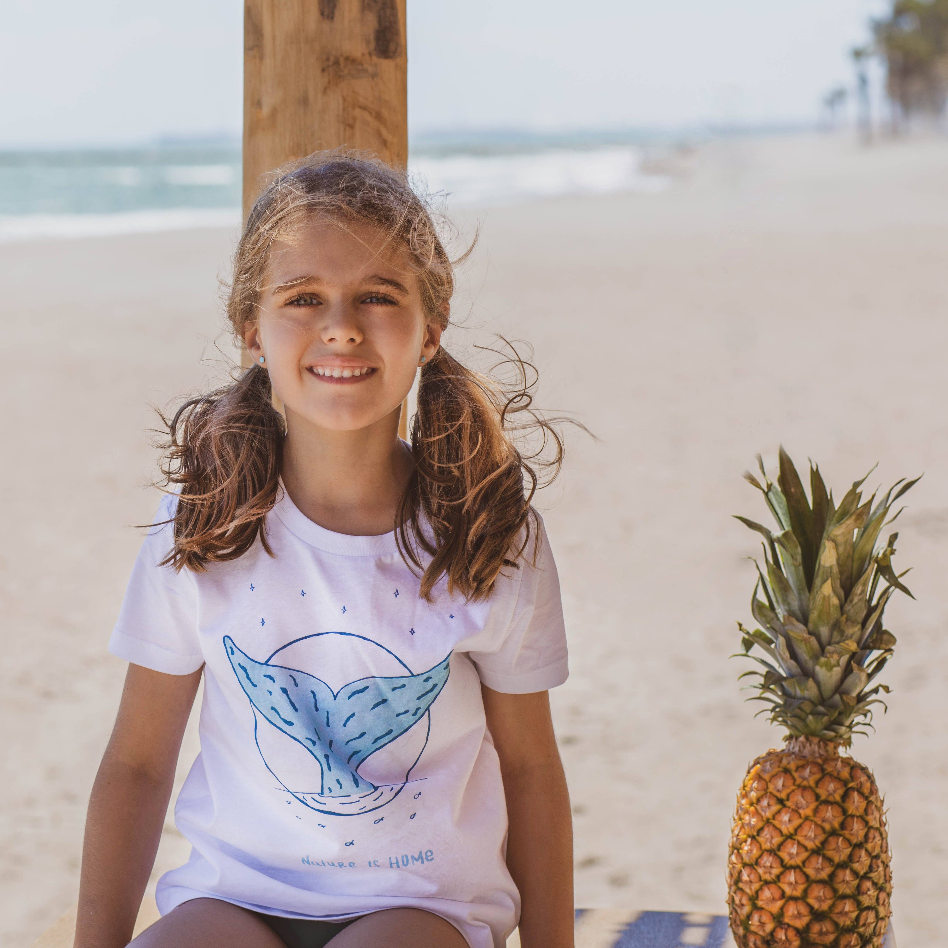 Short sleeve t-shirt in white. Made with 100% organic cotton. Printed in the colors of the planet and the brand, referring to a field of nature, with the text “Coliving with Nature” It has the GOTS, OEKO-TEX and FAIR WEAR seal. Composition: 100% organic cotton.