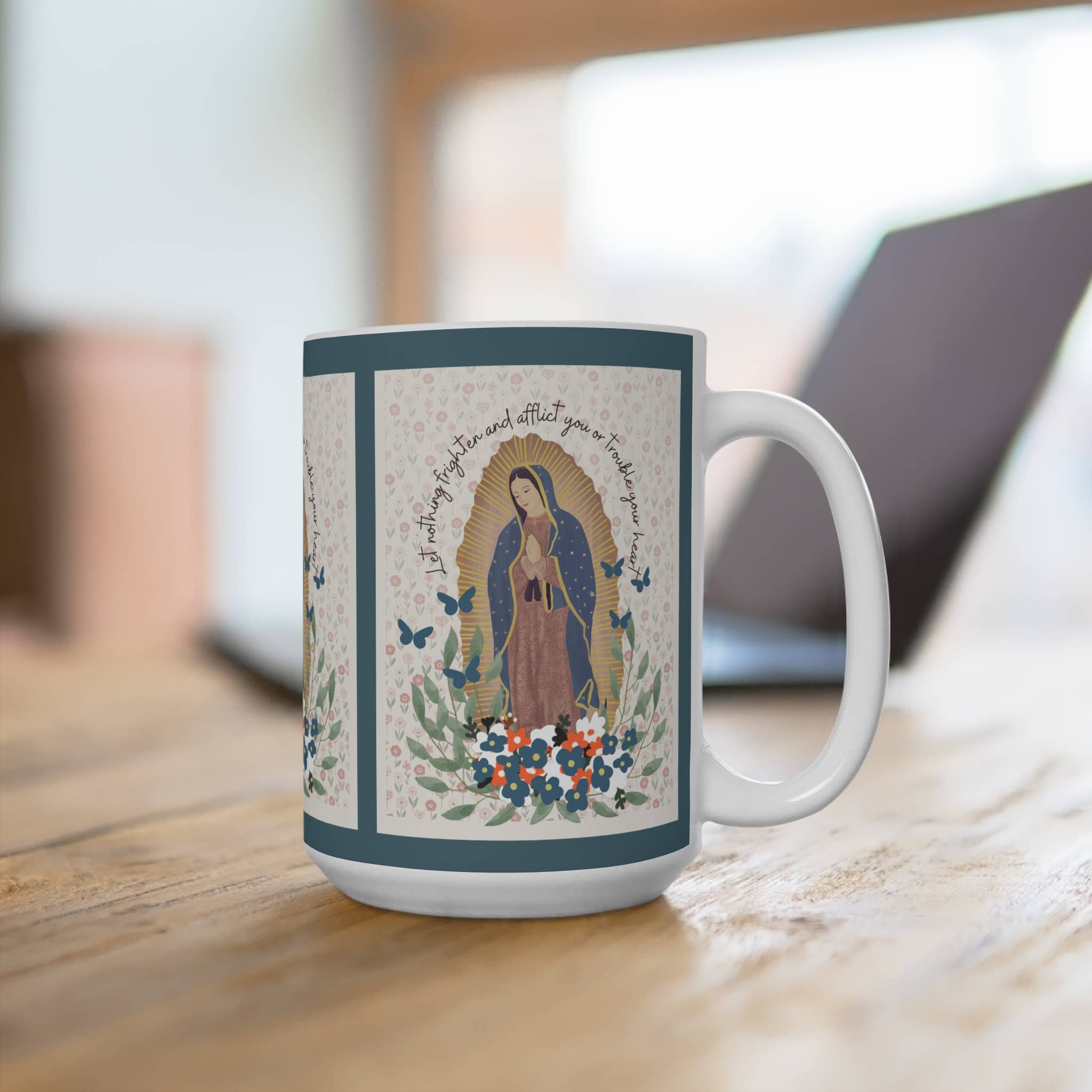 Start your day with faith and inspiration using our Our Lady of Guadalupe Ceramic Mug. Designed to uplift and encourage, crafted from durable ceramic, it’s perfect for enjoying coffee, tea, or any favorite hot beverage. Ideal for personal devotion or as a thoughtful gift, this mug blends faith and function beautifully. Key Features: 12 oz ceramic mug with devotional artwork on both sides Our mugs are printed in Austin, TX Durable ceramic build for everyday use Easy to clean and practical for hot beverages Inspiring faith-based design perfect for prayer time or reflection Thoughtful Catholic gift for confirmations, feast days, holidays, or parish events.