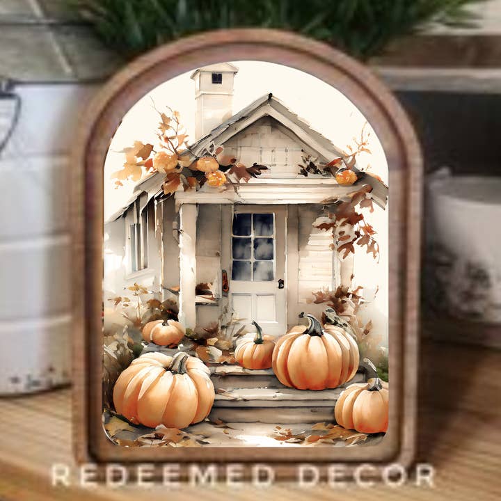 Redeemed Decor - Wholesale Wood Wall Art - Arch Top Pumpkin Path Framed Art0