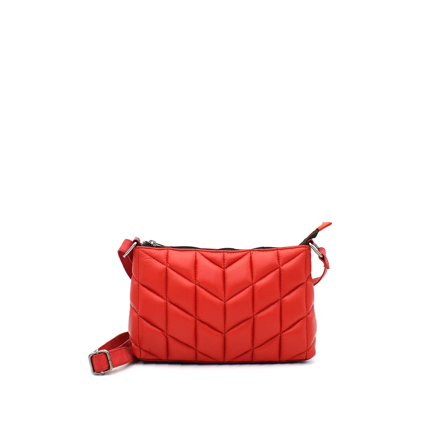 Fashion quilted V stitching crossbody bag with gold chain dangling. 7 1/2"L x 2"W x 6"H
