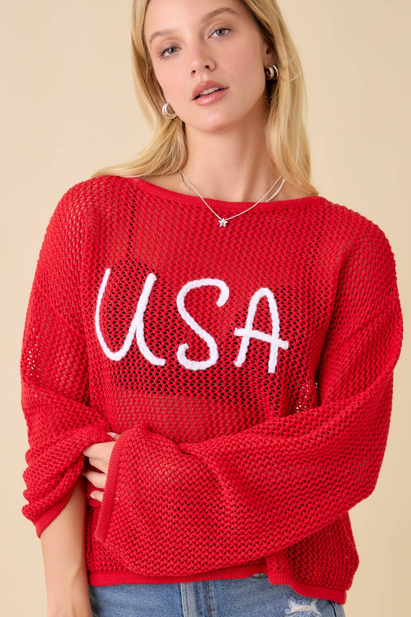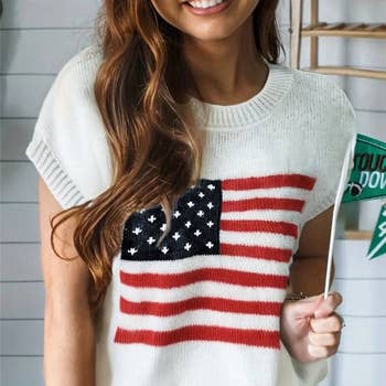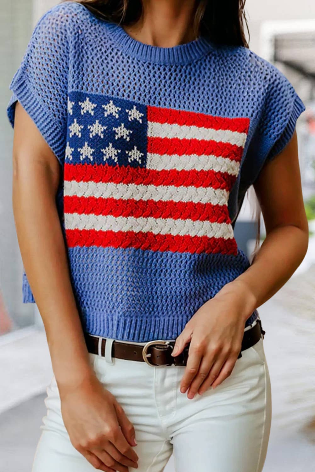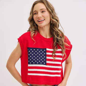 Show off your laid-back style with this flag print open knit crochet sweater top. Featuring a breezy, lightweight design and bold patriotic flair, it's perfect for layering over tanks or swimwear. Ideal for beach days, festivals, or casual outings with a statement touch.