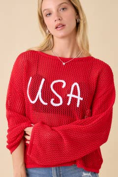 Flag Print Open Knit Crochet Sweater Top - BMW7735