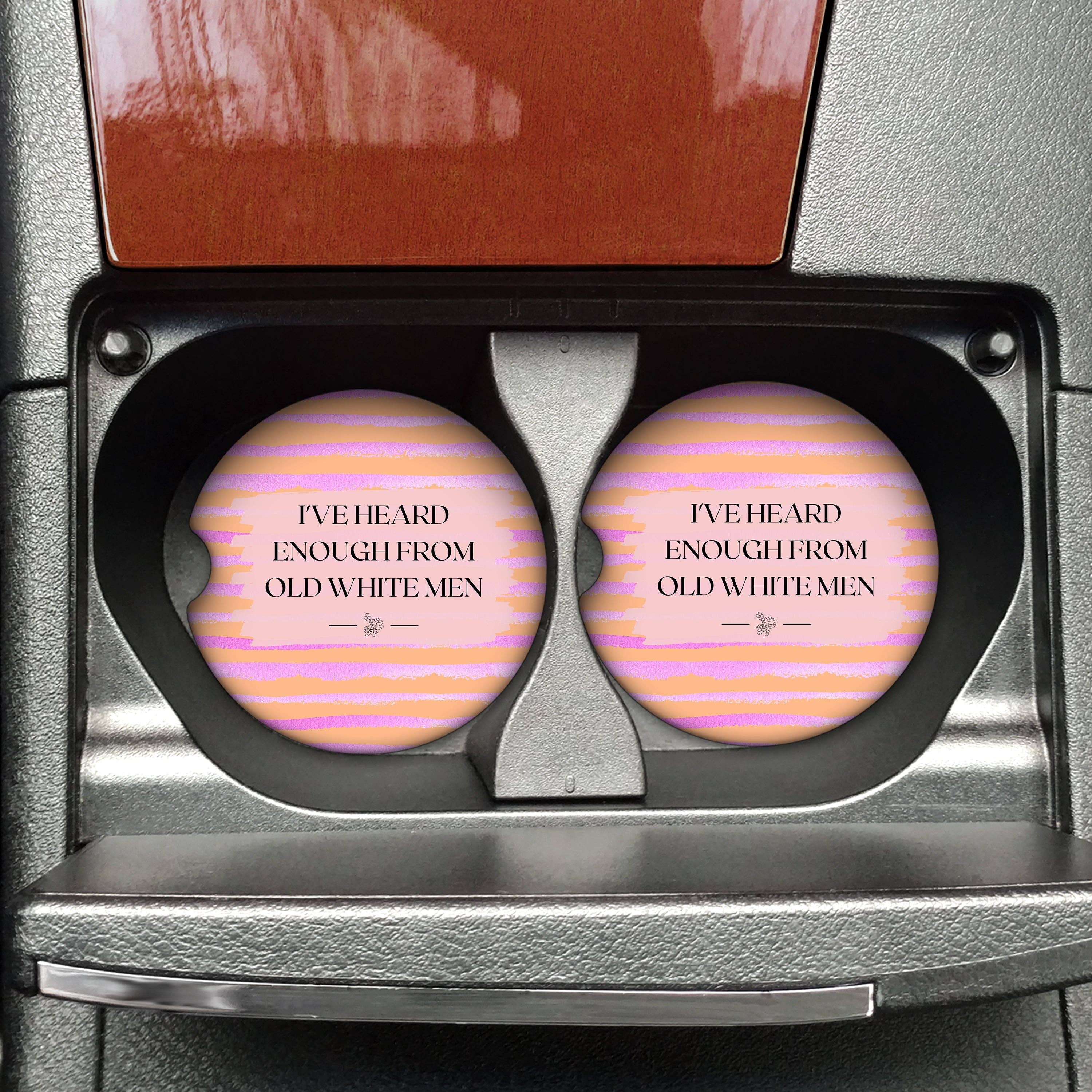 Made of sandstone. Round Divot on the sides for easy removal. 2.56" diameter x .030" height. 1 set = 2 coasters. MOQ 2 sets per design. You will receive 4 total coasters per design.