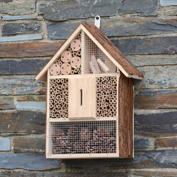 2-in-1 Bird nesting box and Squirrel feeder For squirrels open the large hatch and close the rear round opening. This wooden feeder will help attract squirrels to your garden. It holds around 750g of peanuts, but you can fill it with other foods they like such as grapes, corn, squash, zucchini, pumpkin, strawberries, carrots, apples or seeds. For use as a Bird box close the hatch door and open round opening. The 25mm hole and the size of the box is suitable for a variety of small birds to nest inside roost in the winter. In rural areas, there is a huge shortage of safe natural nesting places for birds. We can all help with this by putting up nesting boxes and encourage them to breed near your home.