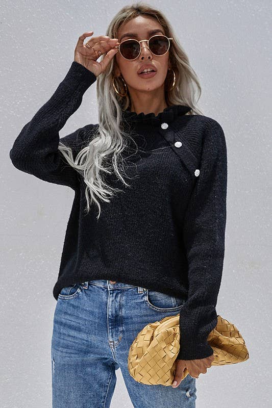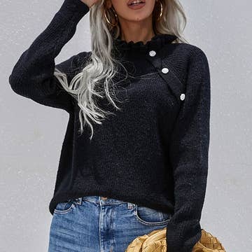 Women's Round Neck Solid Color Sweater