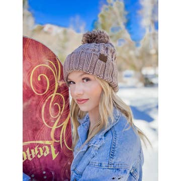 Pink chunky knit cuffed beanie Fleece lined 100% Acrylic Min. Qty. 2