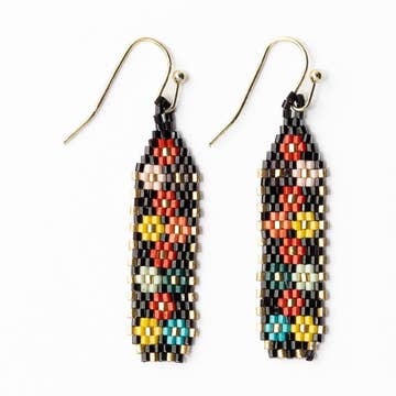 Yellow-blue-black making a fun statement. Style, accented. "Notbeige-notboring” (adj.) describes bold, colorful art/jewelry designed by contemporary artist Mary Lindseth. Small batch jewelry made in the USA. Signature color palettes, wooden beads, surgical stainless steel, acrylic and Czech glass beads, lots of love. Unique, upcycled and always upbeat.