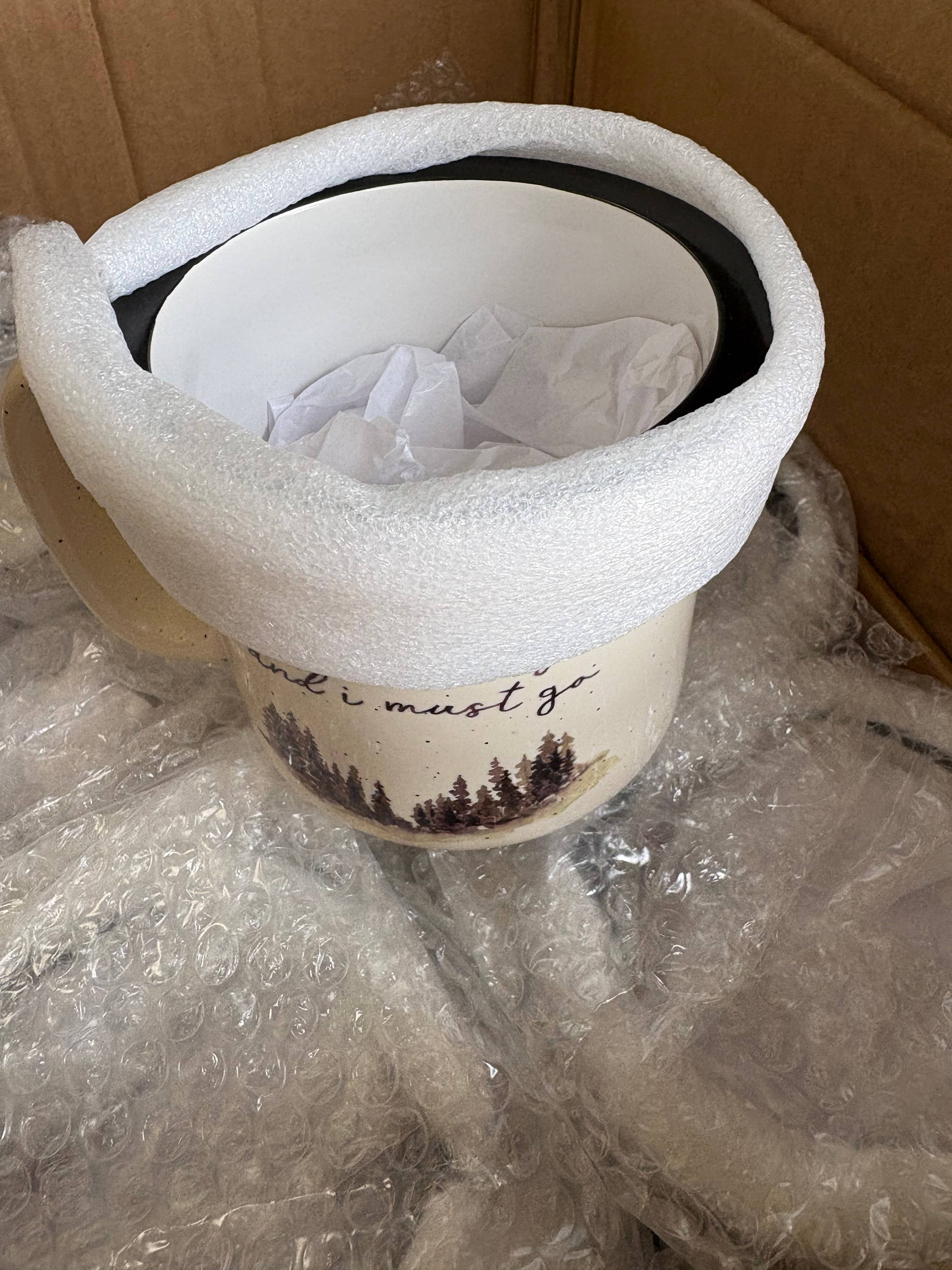 I can’t say enough about the quality, the beauty and the packaging. I was a little concerned when the box arrived because it looked a little worse for wear. But after opening, the mugs were wrapped so professionally, everything was in perfect shape. Totally excited to get these items on my shelves. The quality, and weight of the mugs are amazing. And I can’t forget to mention how beautiful the artwork is.