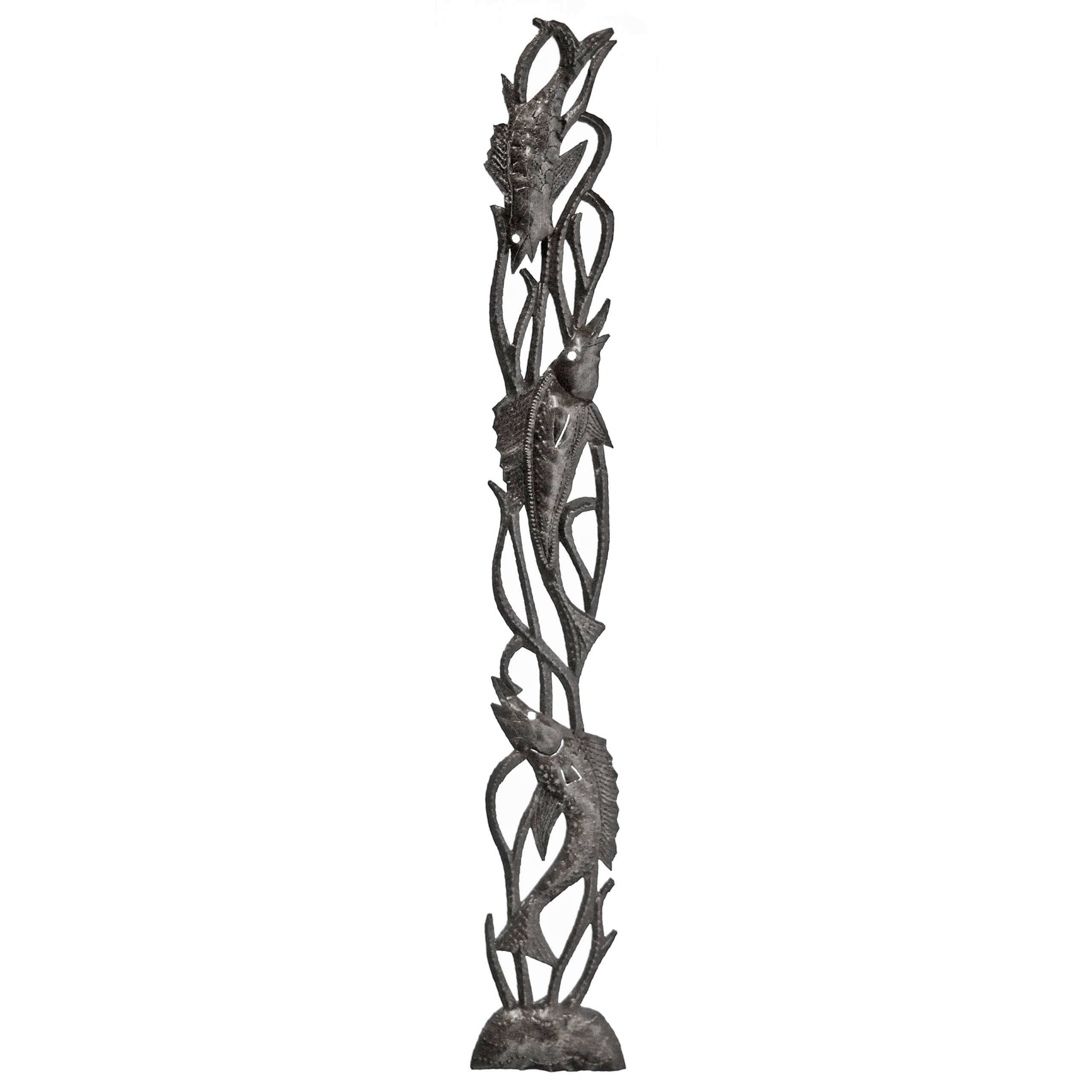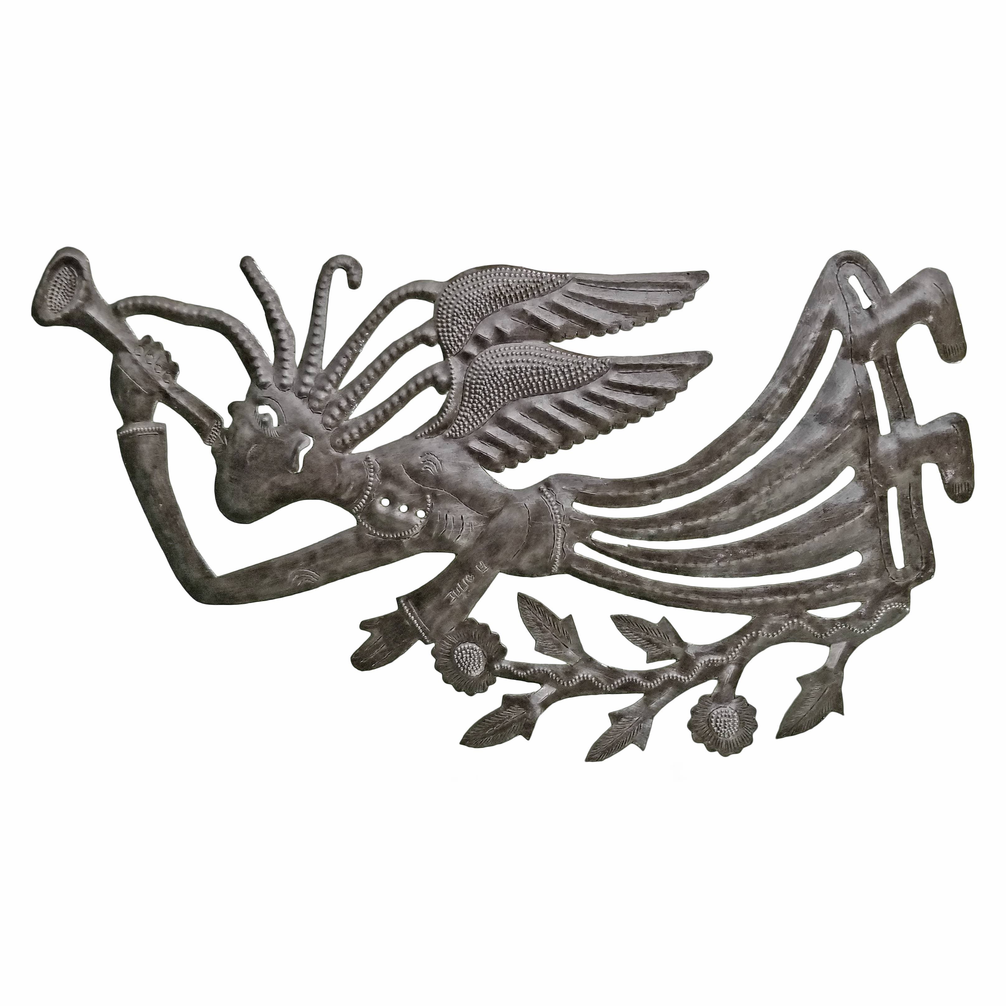 Perfect for home or garden, each Winding Tree is approximately 17" x 17" x 0.5" and hand-chiseled out of recycled steel oil drums by Haitian artisans using techniques first developed by Georges Liautaud in the late 1950s when he chalked out his first design on a flattened steel oil drum and then cut it out by hand with a mallet and chisel. As each piece is handmade, their final dimensions and finish may vary slightly.