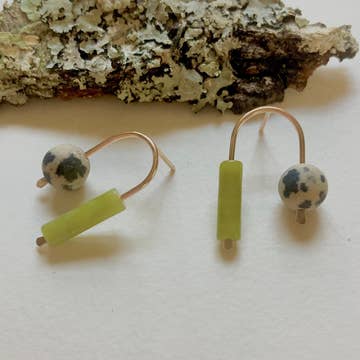 Our collection of Framed Studs are expertly crafted with nickel free hypoallergenic stainless steel bezels that frame unique faux stones. Professional quality polymer clay is blended with pigments and inks to achieve the desired shade, then mixed with foils, metals, and mica before being pressed and layered into slabs. Each individual stone is hand cut and secured into a frame, then baked at low temperatures. Finally, the earrings are washed, dried, and finished with a high gloss resin for a polished appearance or left buffed for a more natural look. Studs are then attached to a branded earring card with a hypoallergenic silicone backing. Studs are 10mm diameter and are extremely light weight