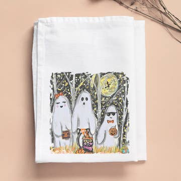 This sweet and spooky, handmade linen/cotton kitchen tea towel featuring our exclusive "Benevolent Bats" Halloween-themed print design. Featuring a colony of gray flying bats on a white background, this cute print is much more cheerful than scary! Perfect for Halloween kitchen decor! High quality construction features mitered corners and 1 corner hanging loop. Digitally printed with eco-friendly, non-toxic dyes & joyfully made In The USA. Color -Gray/white Fabric - 55% Linen/45% Cotton Size - Approximately 17" x 26"