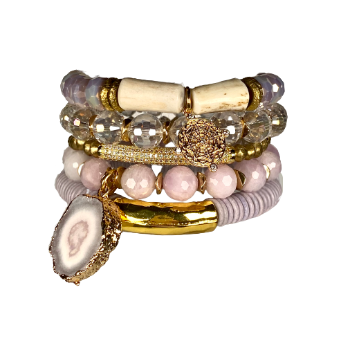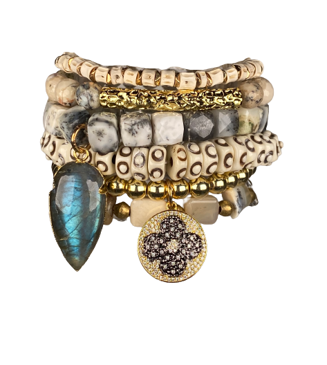 Glad to have the opportunity to add your beautiful bracelets to the Spring Collection at my shop. Thank you for answering questions and creating the most stunning mixtures of stones charms and beads. Great looking high end pieces. The boxes with soft pillow displays was a special added surprise.