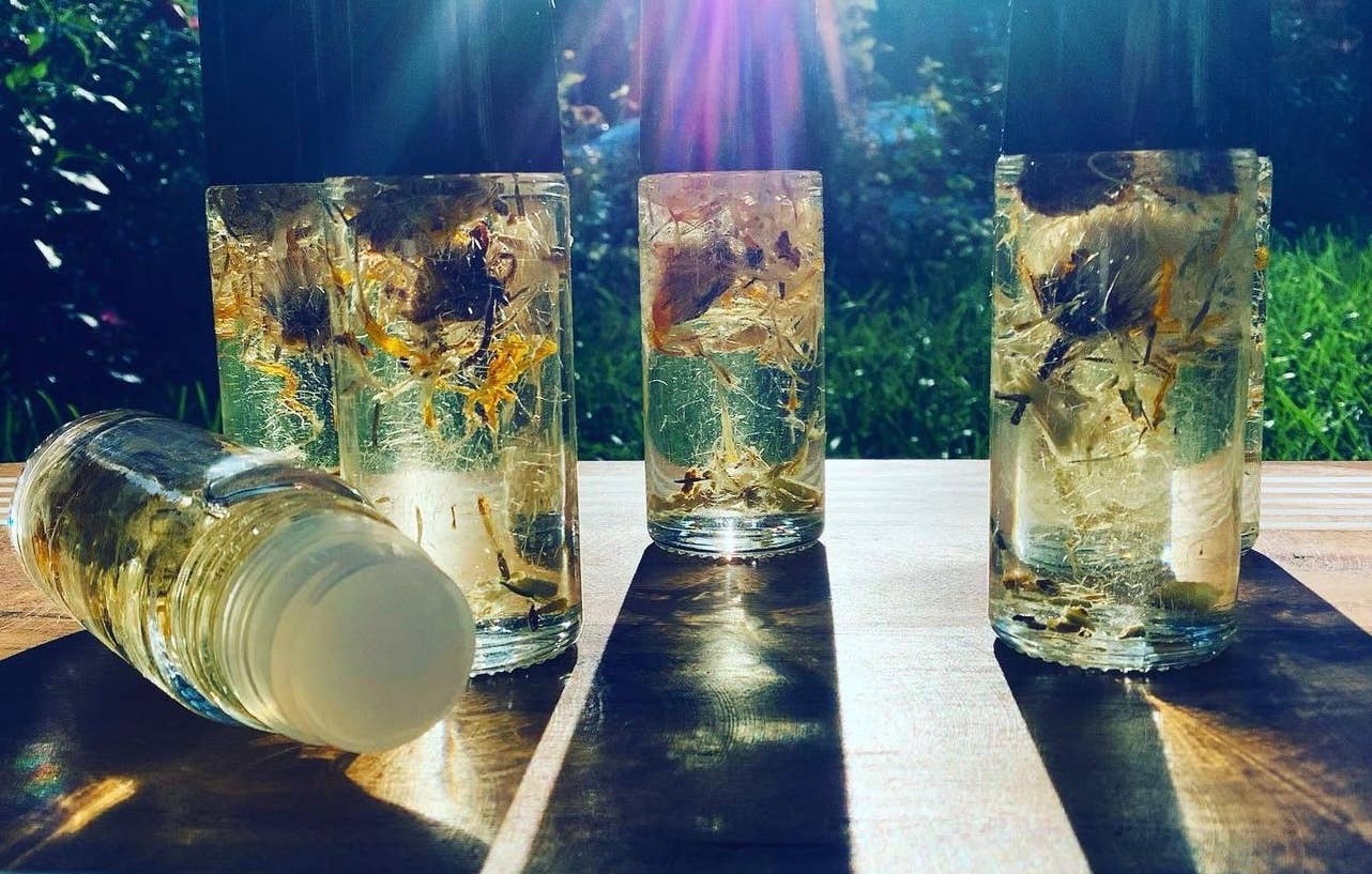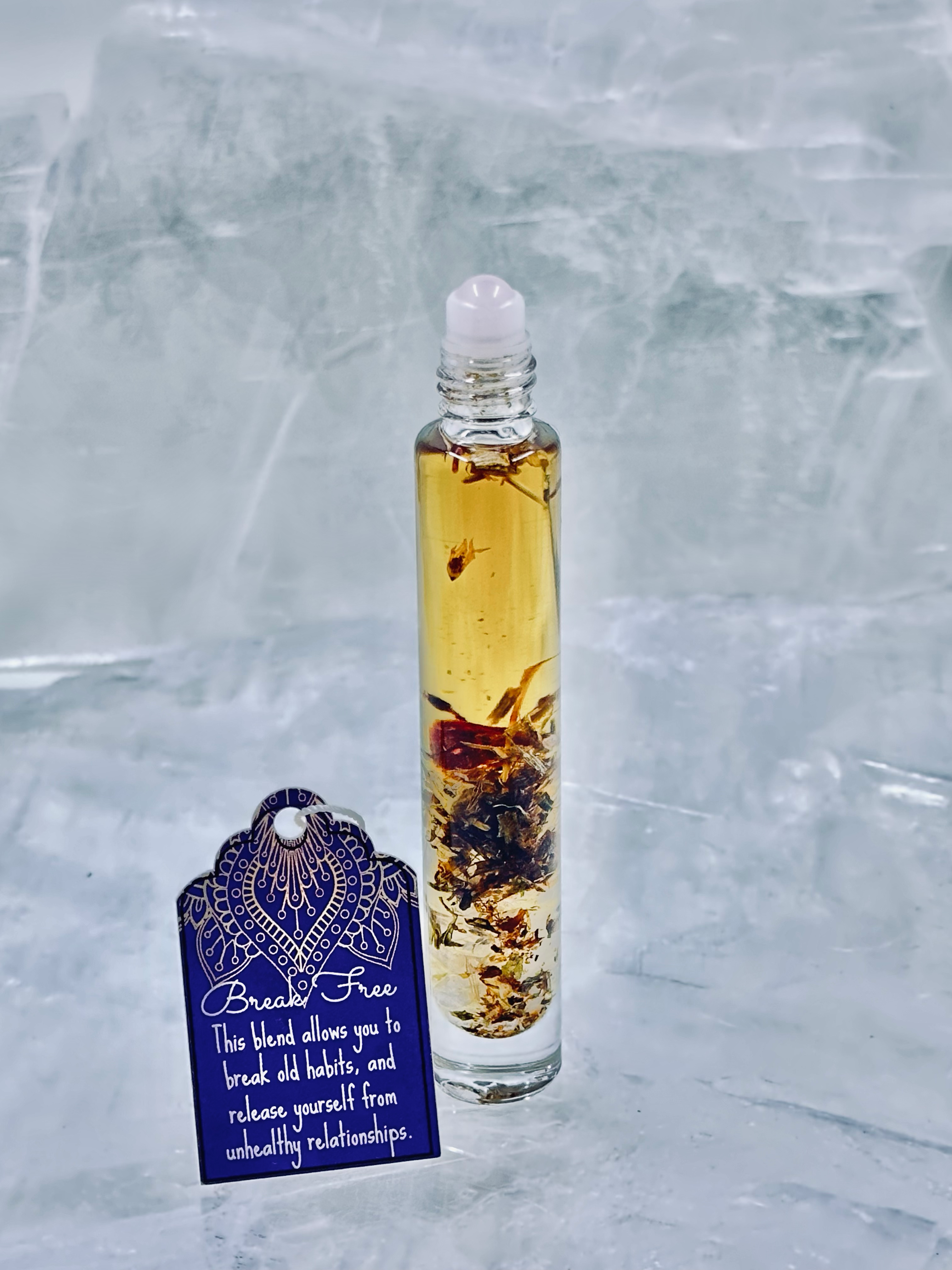 Hand-crafted, natural perfume blends using essential oils, dried herbs, flowers, and crystals in an organic jojoba oil base. Using an organic jojoba oil base, we created beautiful combinations of essential oils to connect with the energy of crystals that can help amplify energy fields. Our intention roll-on perfume is a fantastic way to connect you with your higher intentions. Our premium quality hand-crafted blends use only pure essential oils and crystals, creating aromas that can soothe the soul and bring a sense of balance to life. Size 10ml oil roller with natural crystal roller on top - Can use on the bottom of feet, wrists, and neck to help keep calm and stress at bay - Always try a small test patch on your skin to make sure there is no irritation. - Vegan, toxin-free, phthalate-free, paraben-free, mutagen-free, and cruelty-free.