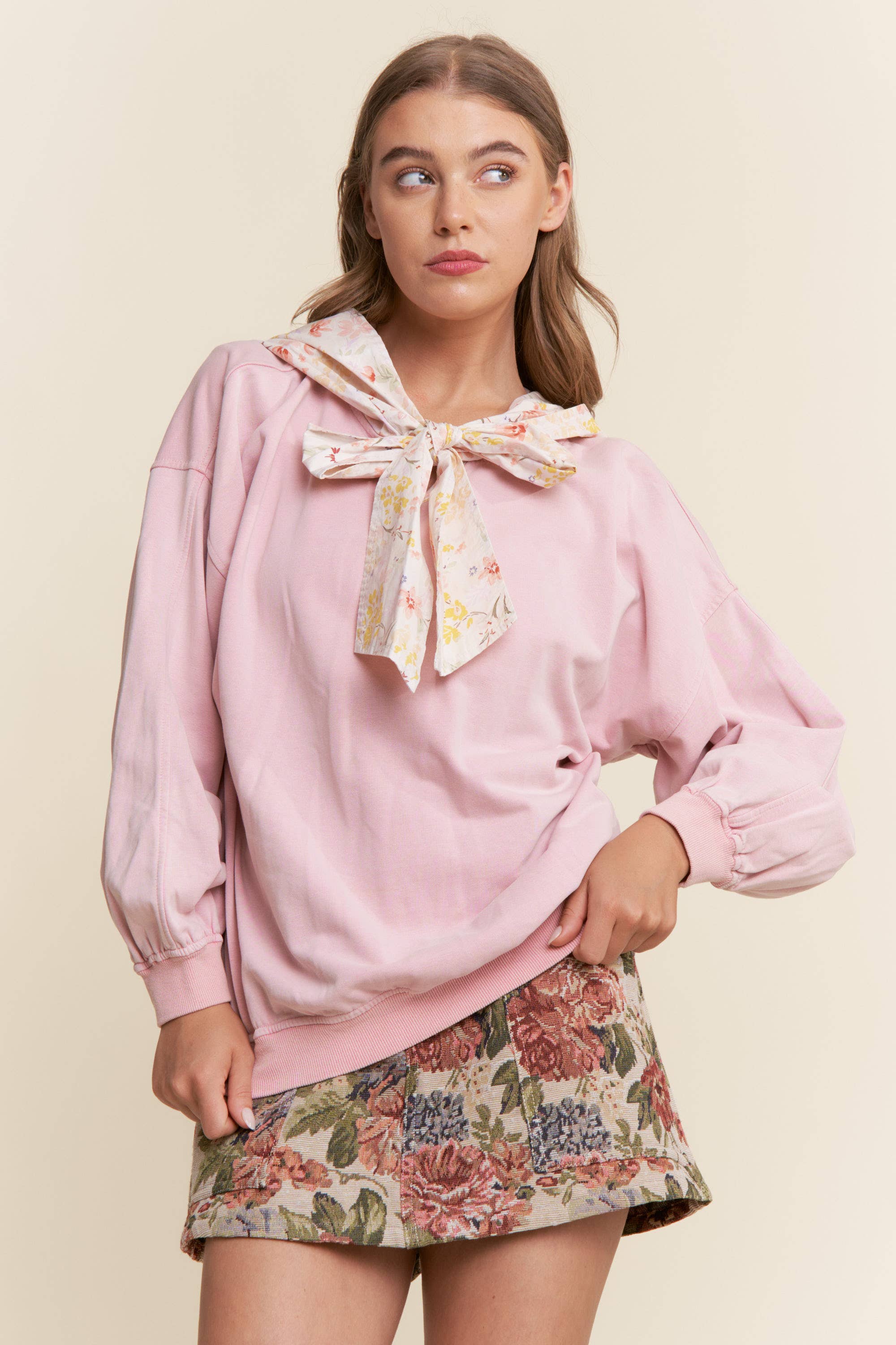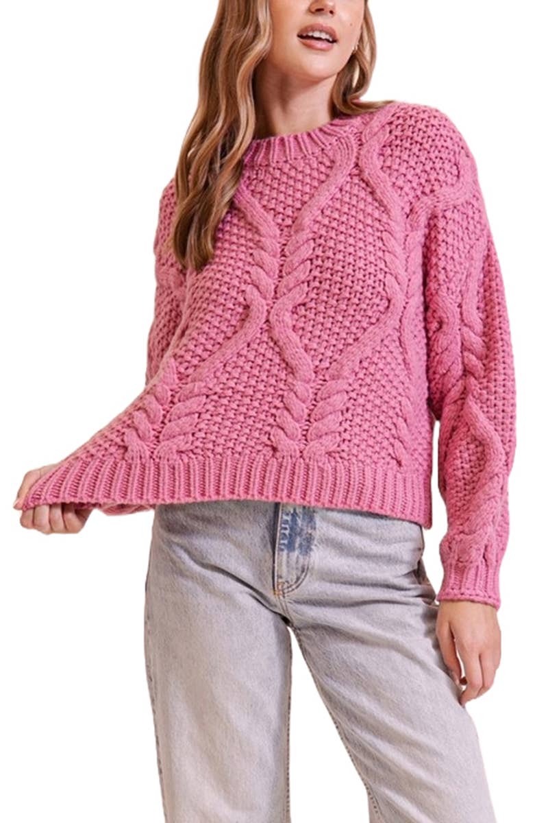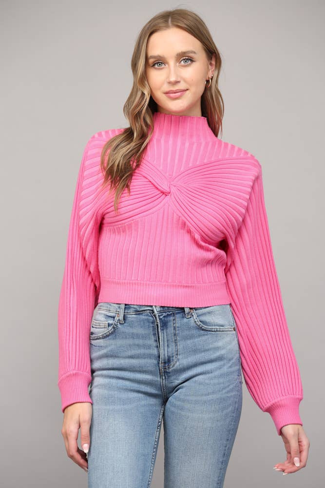 * Style No.: E14993SW A statement knit designed to turn heads, this pink cherry sweater top blends playful charm with chic versatility. Featuring a soft metallic sweater knit, long sleeves, and striking contrast red bows, it’s the perfect mix of feminine and bold. The fitted silhouette makes it easy to style for holiday gatherings, night outs, or even school-girl inspired looks, while the stretchy knit ensures comfort all day. Pair with plaid minis for a preppy twist, or high-waisted trousers for an elevated evening outfit. A true holiday-ready must-have that transitions seamlessly into year-round standout moments. Features - Long sleeves - Metallic sweater knit - Contrast bow - Stretchy Size + Fit Model is 5'9" and wearing a size Small Please refer to our size chart.
