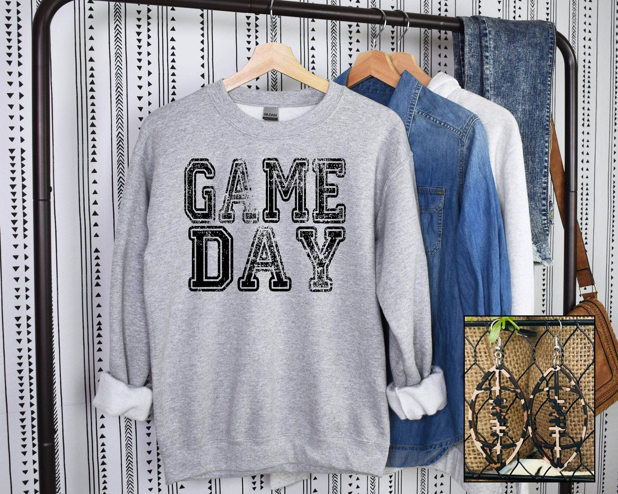 Get ready to turn heads at the tailgate with our camo Gameday graphic sweatshirt—perfect for layering on cool Friday nights under the stadium lights. Featuring a bold, collegiate-style design in classic camouflage tones, this cozy unisex crewneck is made for football season fanatics. Whether you're cheering on your hometown team or heading to a college football game, this camo gameday sweatshirt delivers both comfort and style. Details: Cotton/Poly blend Fit: Unisex Style: Crew neck sweatshirt Shirt Color: Black This graphic is applied using a DTF transfer. Remind customers for a longer last to turn the shirt inside out and wash on gentle cycle.
