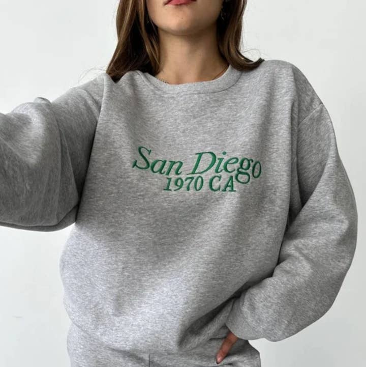 Gray "Love" Embroidered Sweatshirt for wholesale on Faire