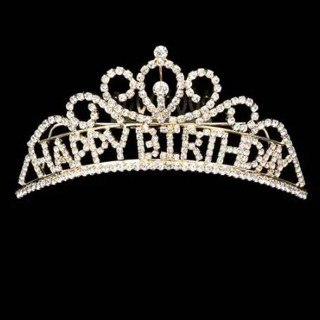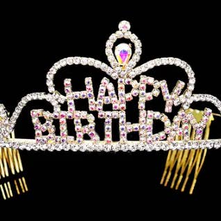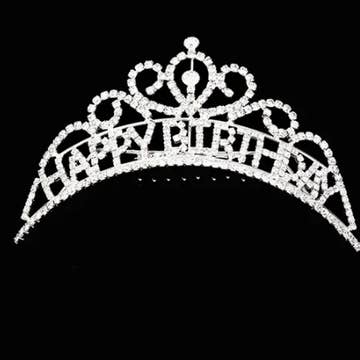 Rhinestone Paved HAPPY BIRTHDAY Message Princess Tiara • Size : 2" H